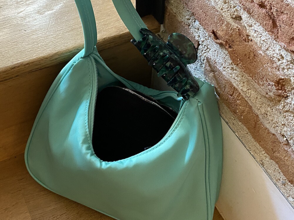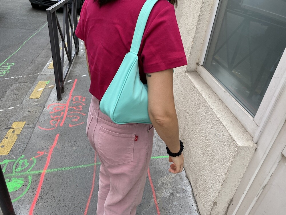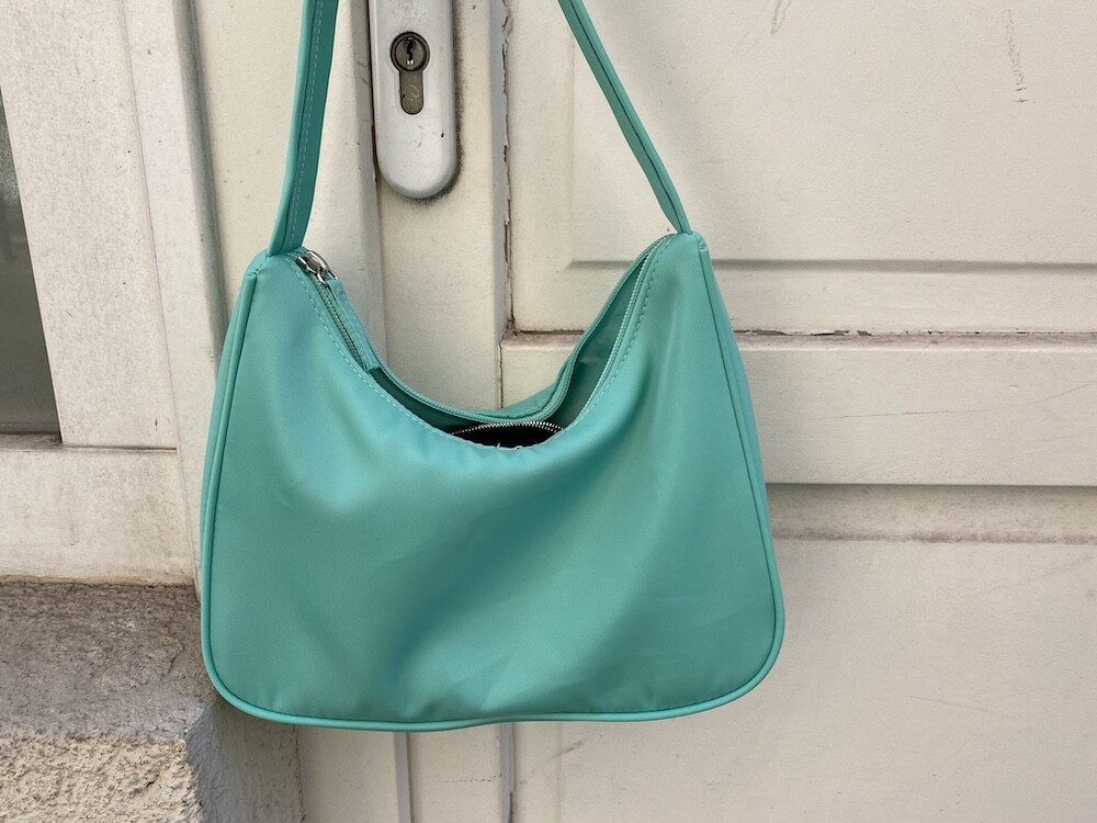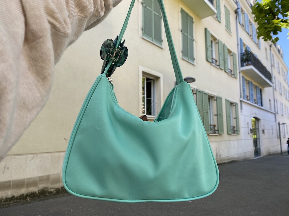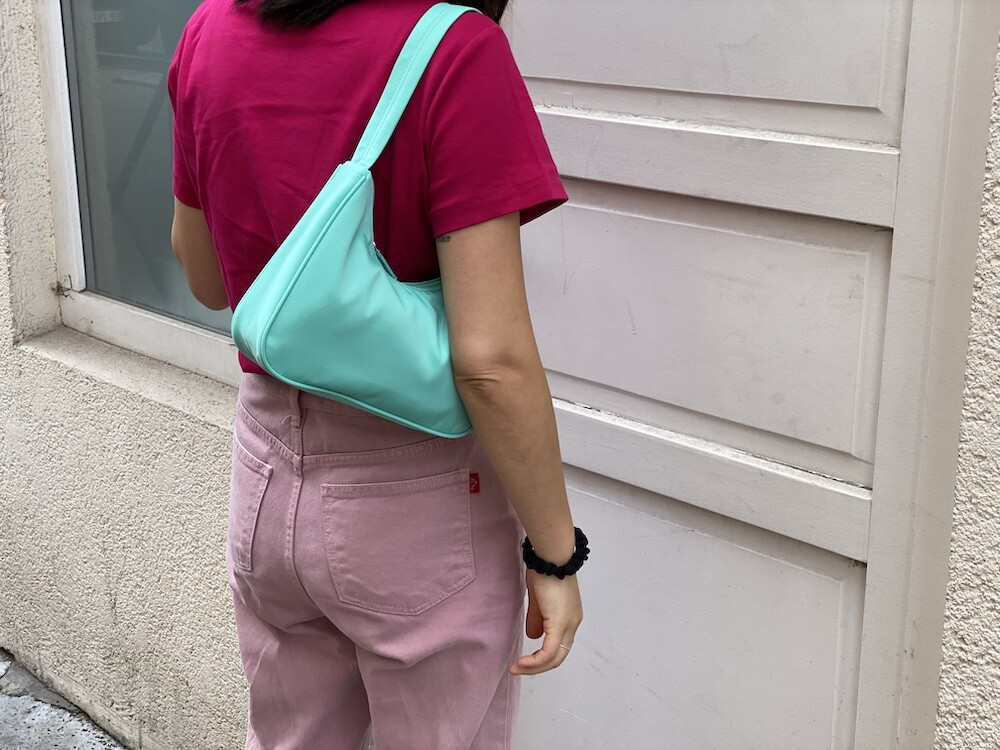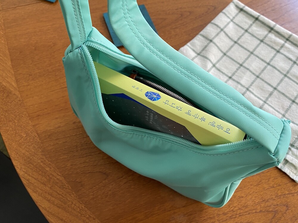 민트색의 숄더백이에요. 공식 색상명은 블루 라이트(Blus light)이지만, 우리가 민트 초코칩 아이스크림을 떠올릴 때 생각나는 진한 민트색이에요. 빛에 따라 초록빛이 더 나기도 하고 하늘빛이 더 나기도 하는 신기한 색이에요.