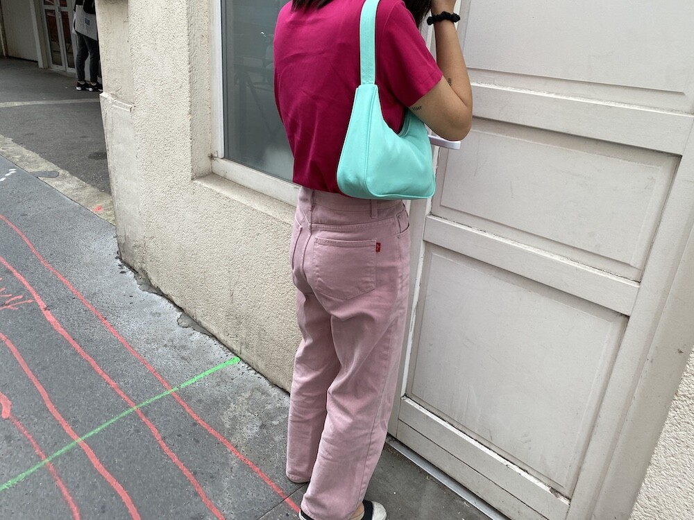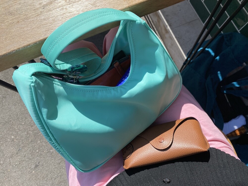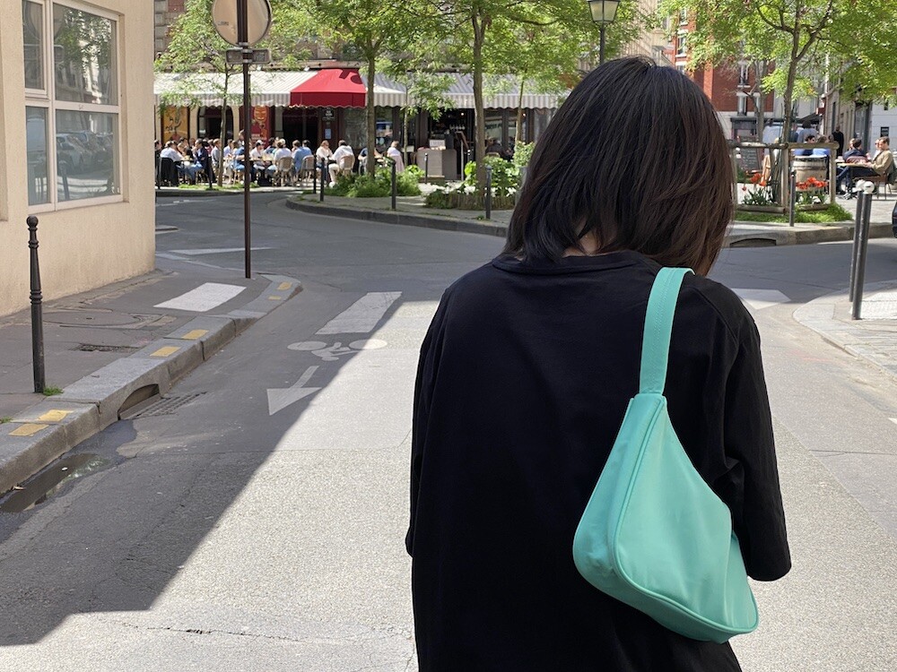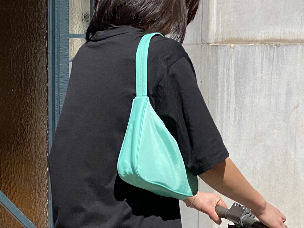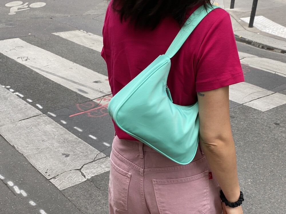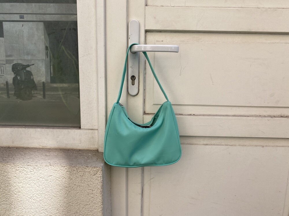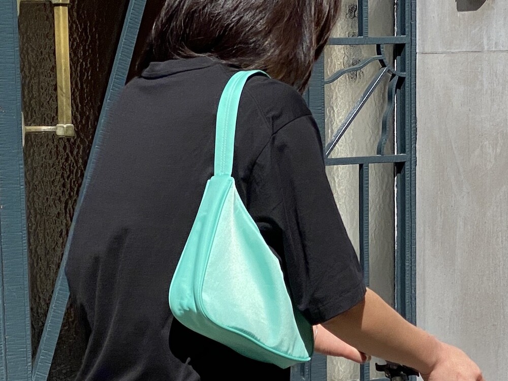민트색의 숄더백이에요. 공식 색상명은 블루 라이트(Blus light)이지만, 우리가 민트 초코칩 아이스크림을 떠올릴 때 생각나는 진한 민트색이에요. 빛에 따라 초록빛이 더 나기도 하고 하늘빛이 더 나기도 하는 신기한 색이에요.