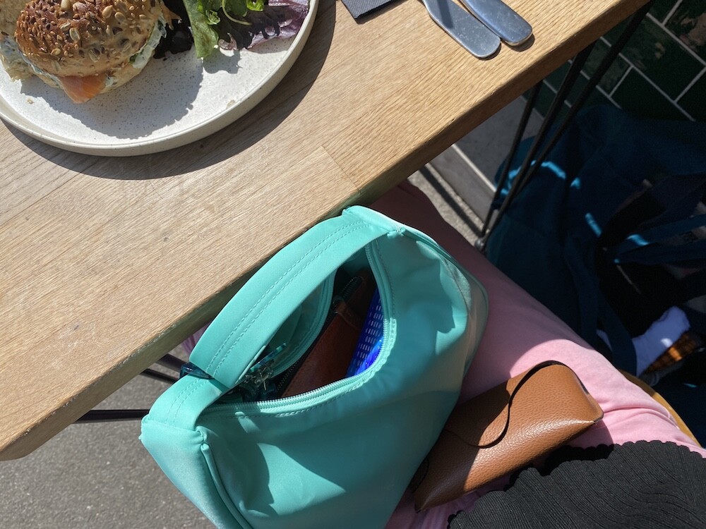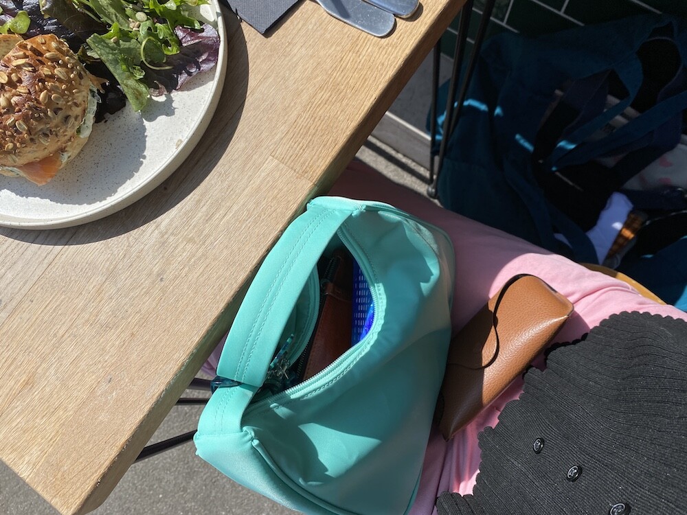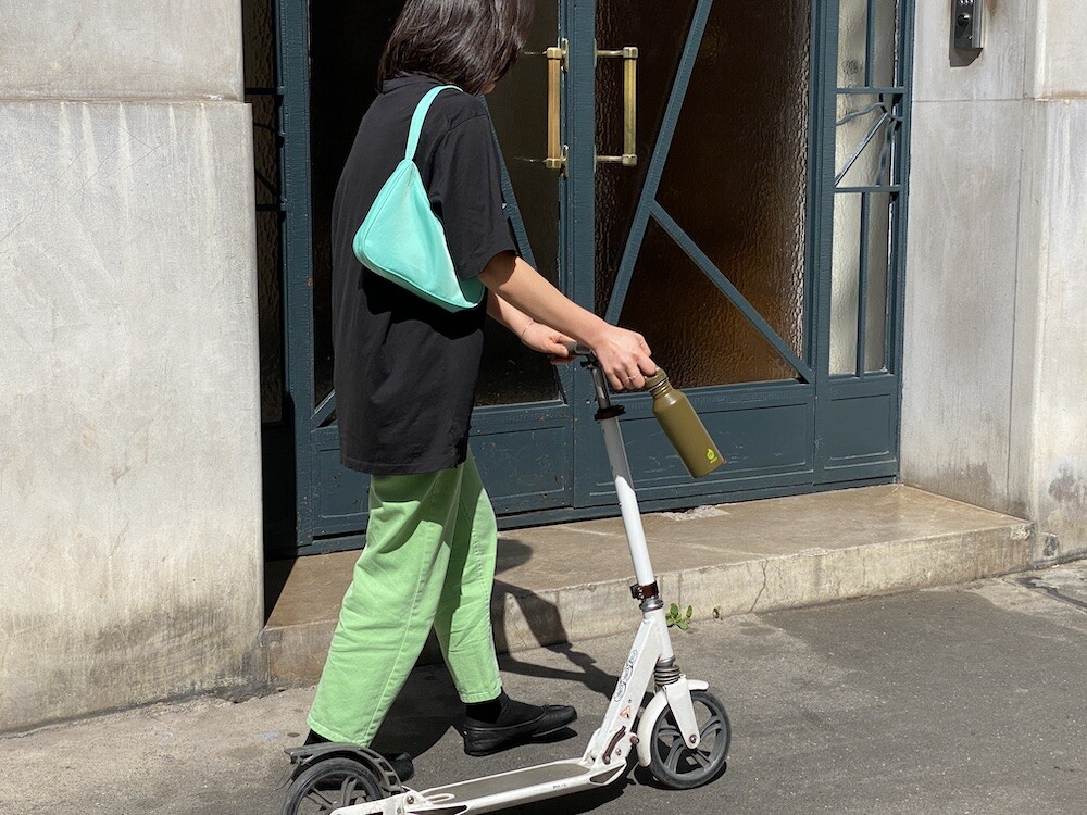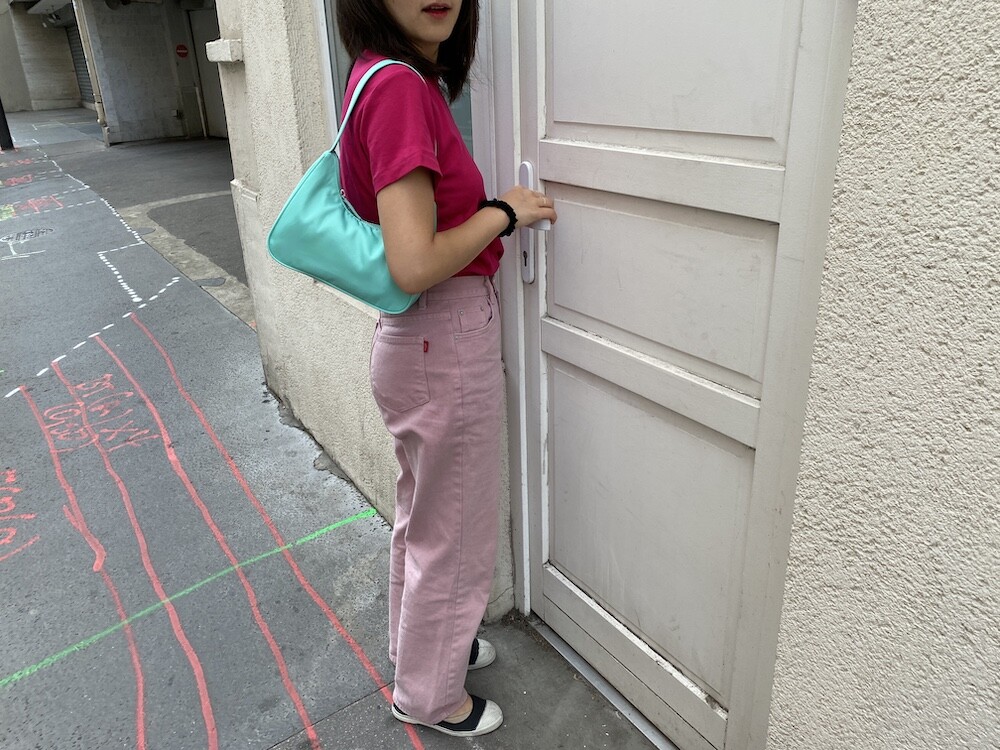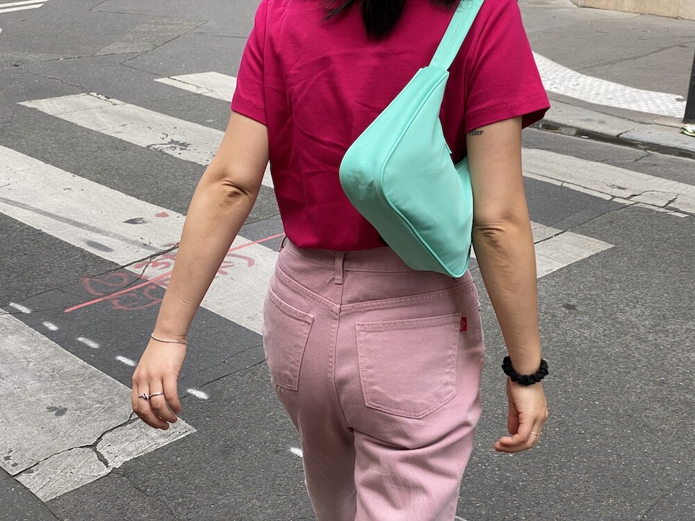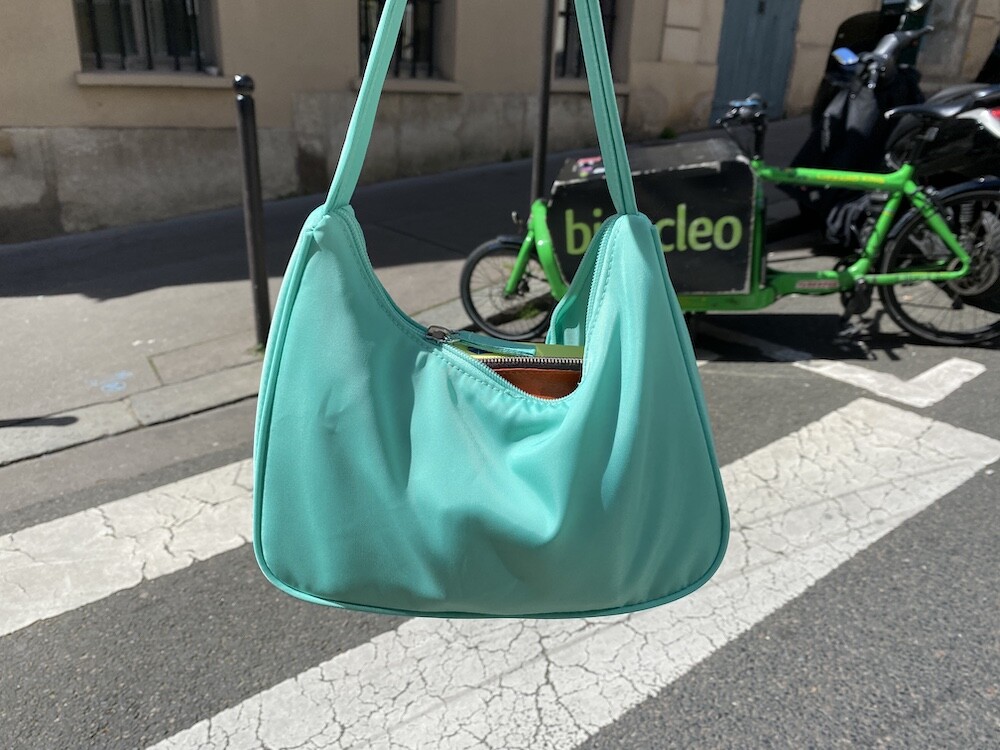 민트색의 숄더백이에요. 공식 색상명은 블루 라이트(Blus light)이지만, 우리가 민트 초코칩 아이스크림을 떠올릴 때 생각나는 진한 민트색이에요. 빛에 따라 초록빛이 더 나기도 하고 하늘빛이 더 나기도 하는 신기한 색이에요.