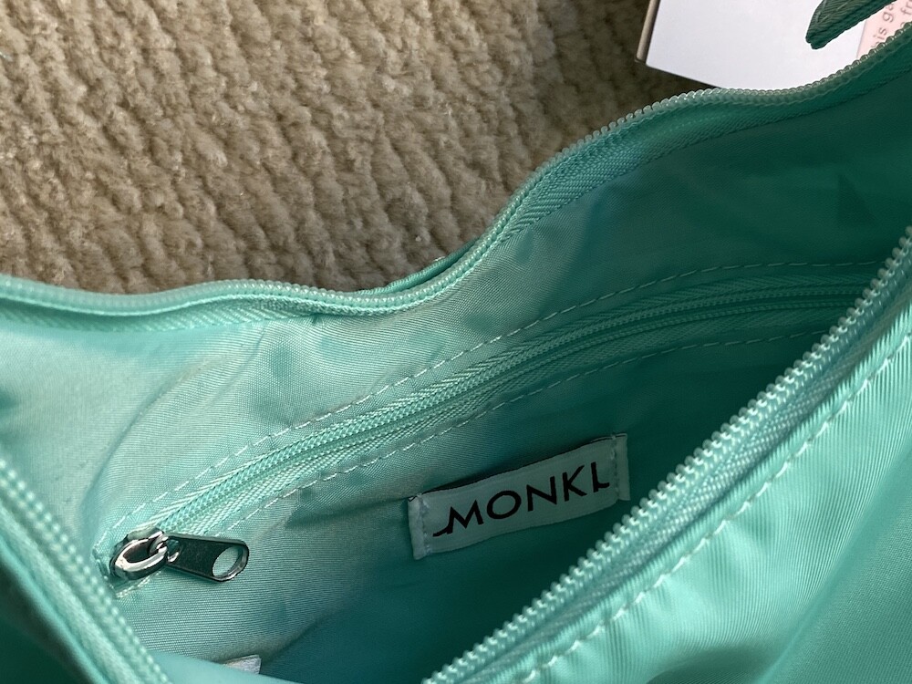 몽키(MONKI)의 재생 폴리에스테르 힐마 Hilma 숄더백 블루 라이트(민트)입니다.