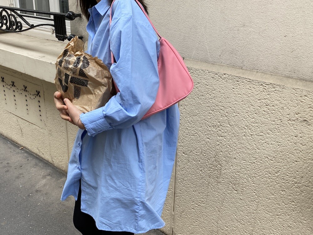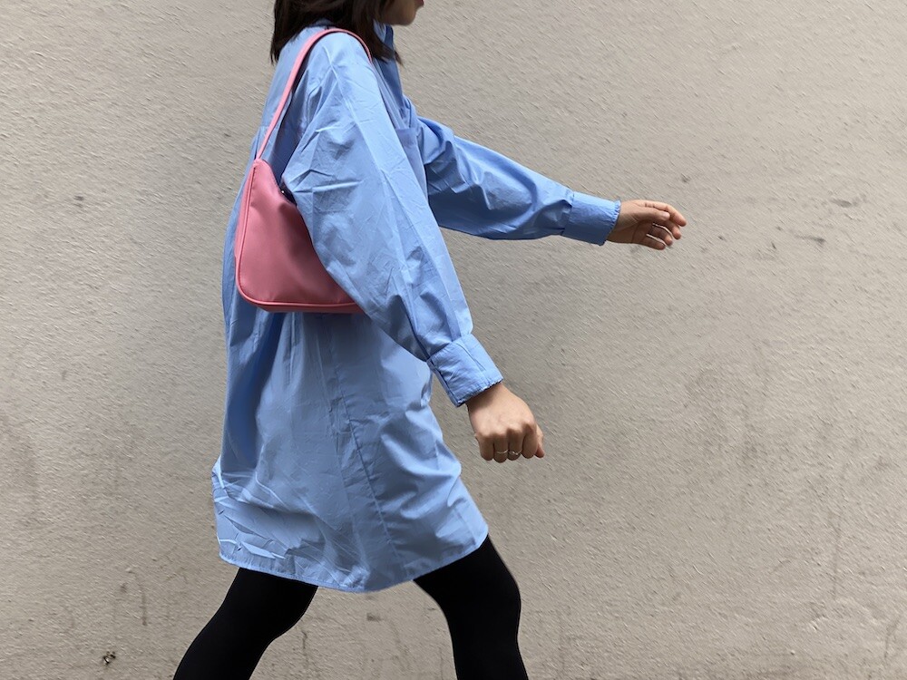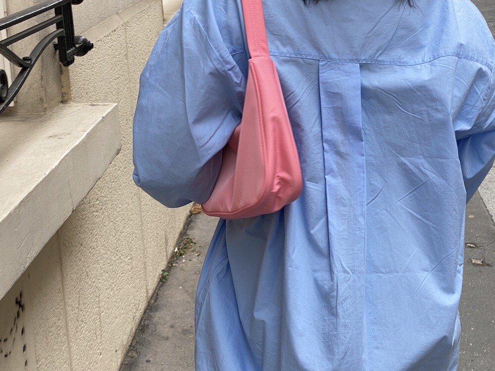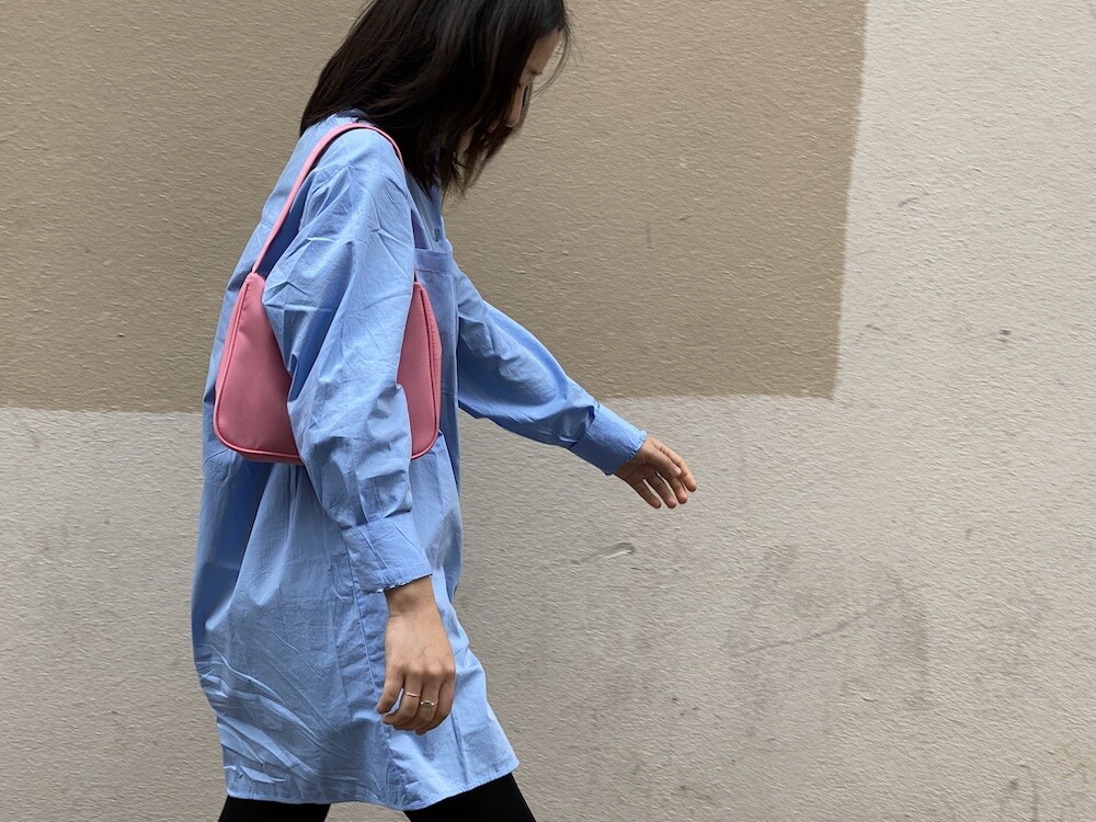 분홍색이 귀여운 숄더백이에요. 작은 사이즈이지만 두께가 있어서 핸드폰, 장지갑 같은 것들이 충분히 들어가요. 안쪽에는 작은 속주머니가 있어서 카드 같은 것들은 따로 넣어 실용적이고 깔끔하게 들고 다니실 수 있어요.