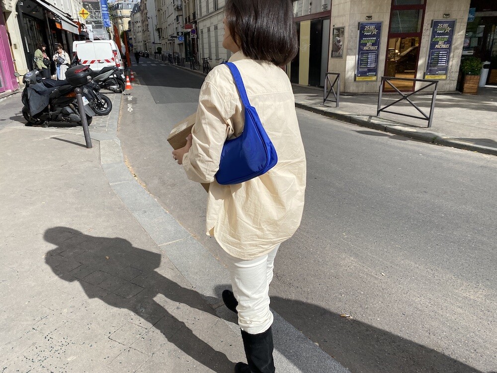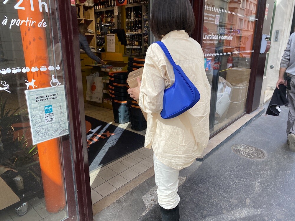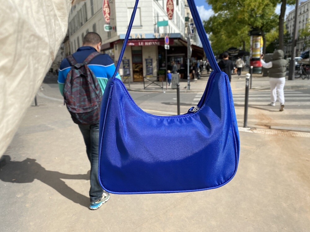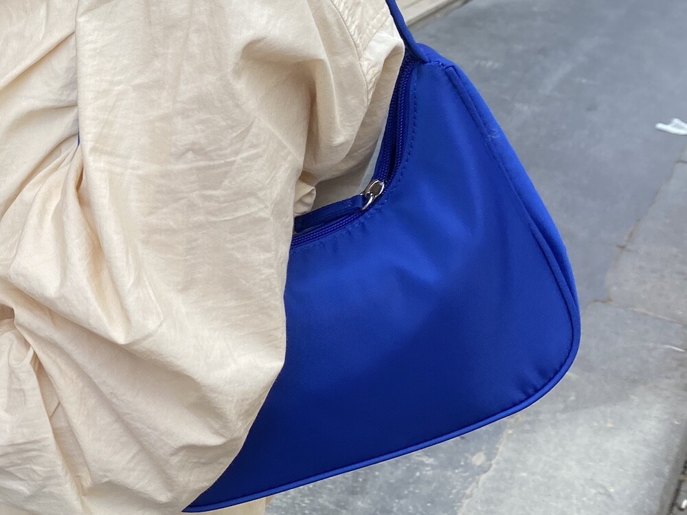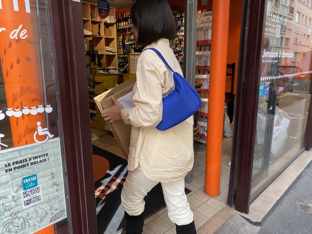 제가 진짜 좋아하는 쨍한 파란색의 힐마백이에요. 많은 사람들이 '마티스 블루'라고 부르는 블루죠! 작은 사이즈이지만 두께가 있어서 핸드폰, 장지갑 같은 것들이 충분히 들어가요. 안쪽에는 작은 속주머니가 있어서 카드 같은 것들은 따로 넣어 실용적이고 깔끔하게 들고 다니실 수 있어요.