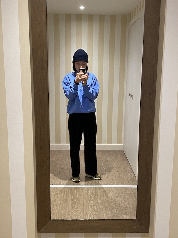 저는 보통 옷 M 사이즈를 입습니다. S은 박시한 티셔츠나 사이즈가 크게 나온 제품, 스판기 있는 제품들 말고는 절대 안 들어가요.