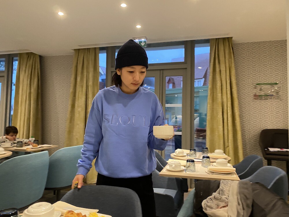보드라운 오가닉 코튼 소재의 맨투맨 티셔츠예요. 소재에서 느껴지는 보드라움이 있어서, 스웻셔츠를 입고 있으면 계속 손으로 만져보고 있는 저를 발견해요. 두꺼운 소재는 아니지만 안쪽에 기모 처리가 되어 있어 추운 날에도 조금 더 따뜻하게 입으실 수 있으실 것 같고, 색깔이 흔하지 않아서 참 예뻐요.
