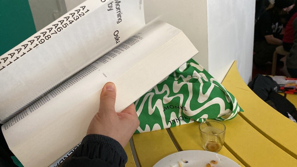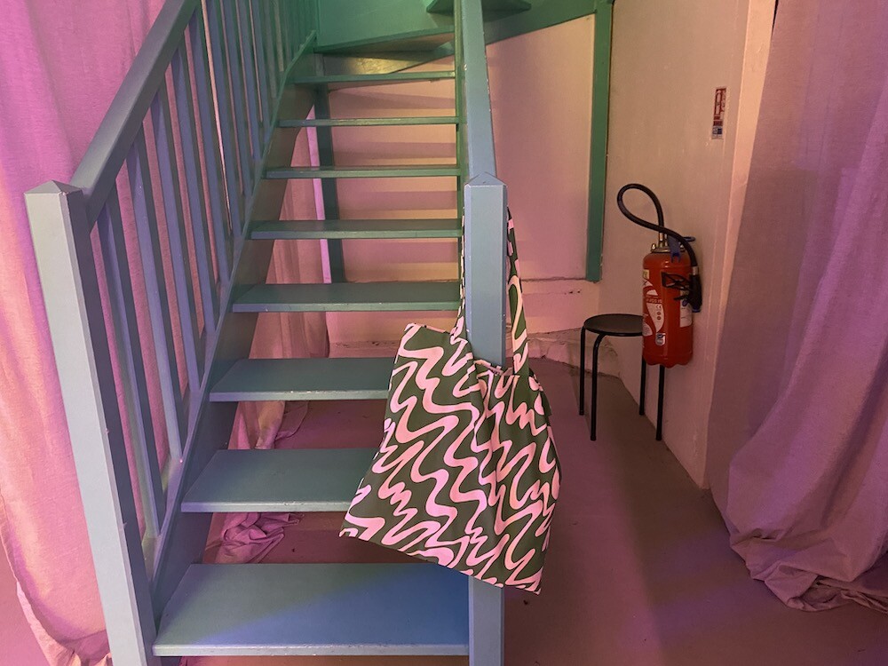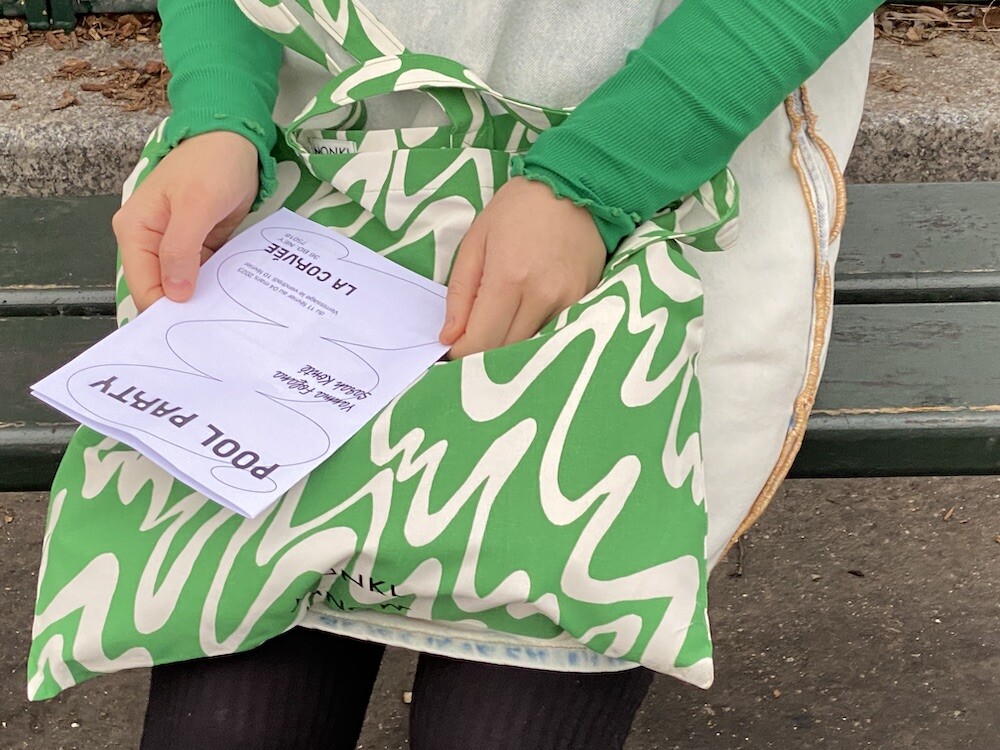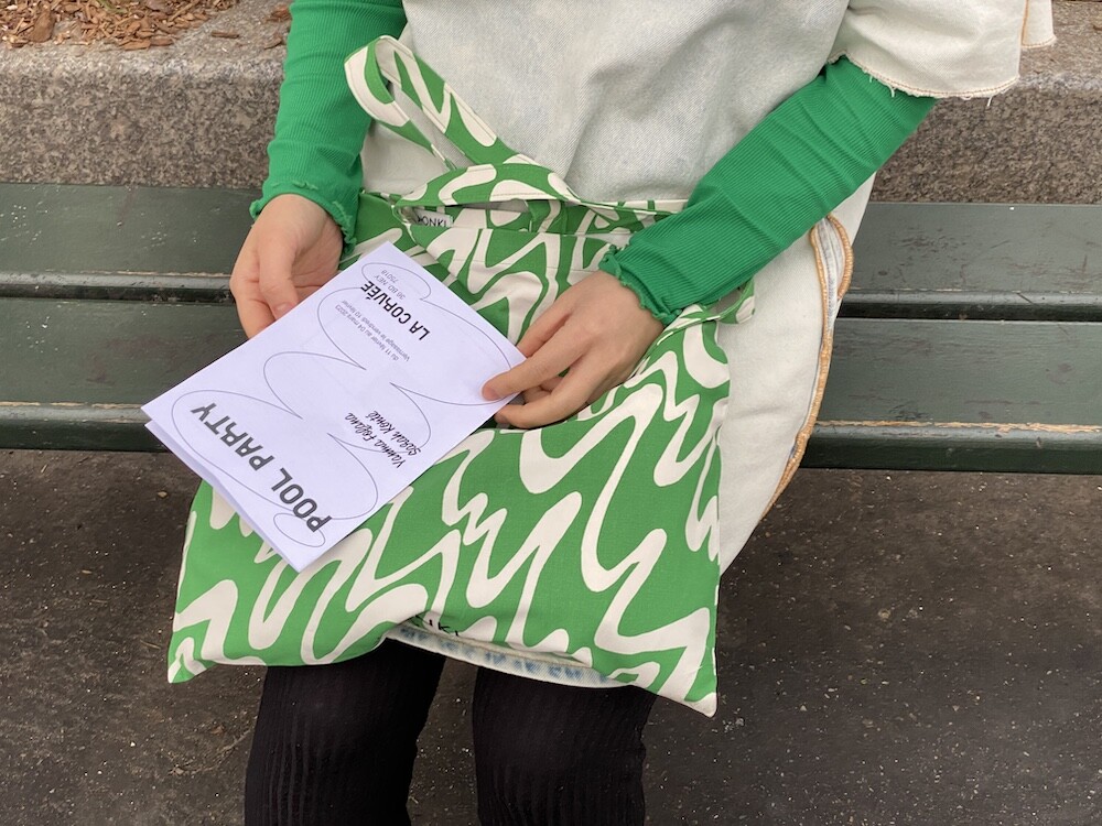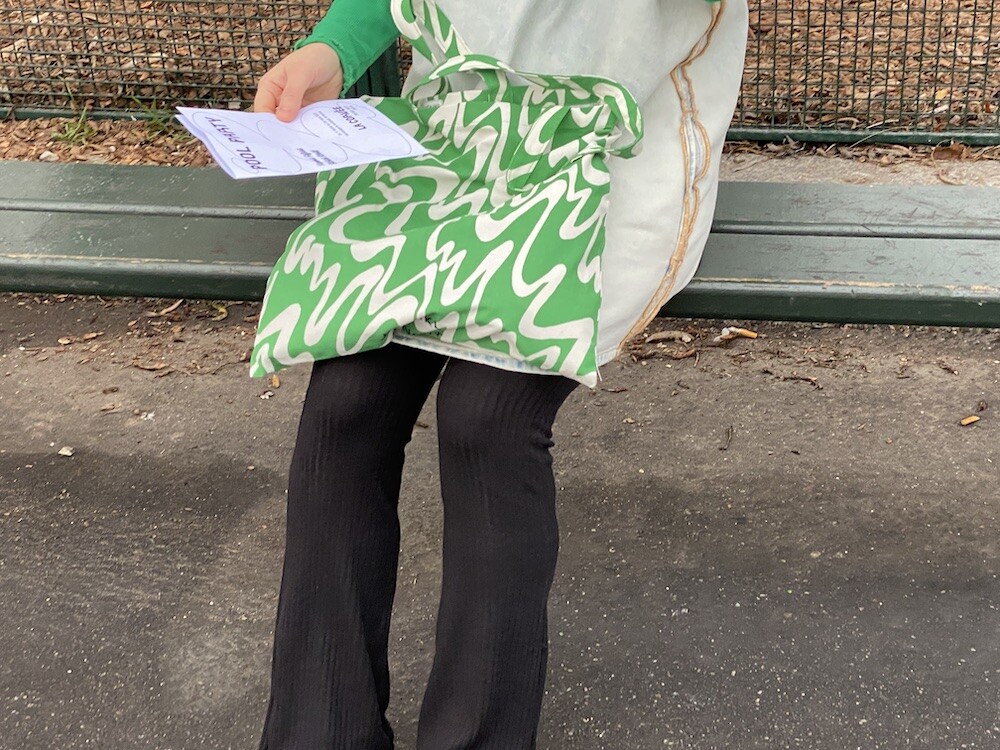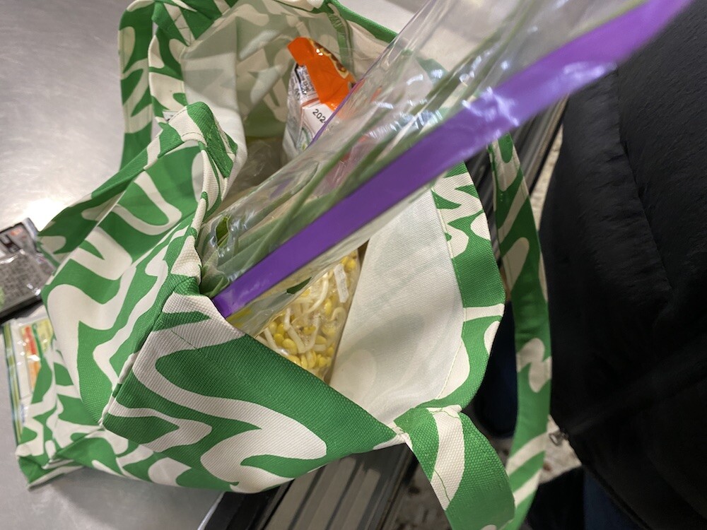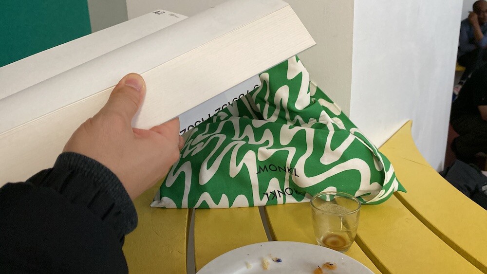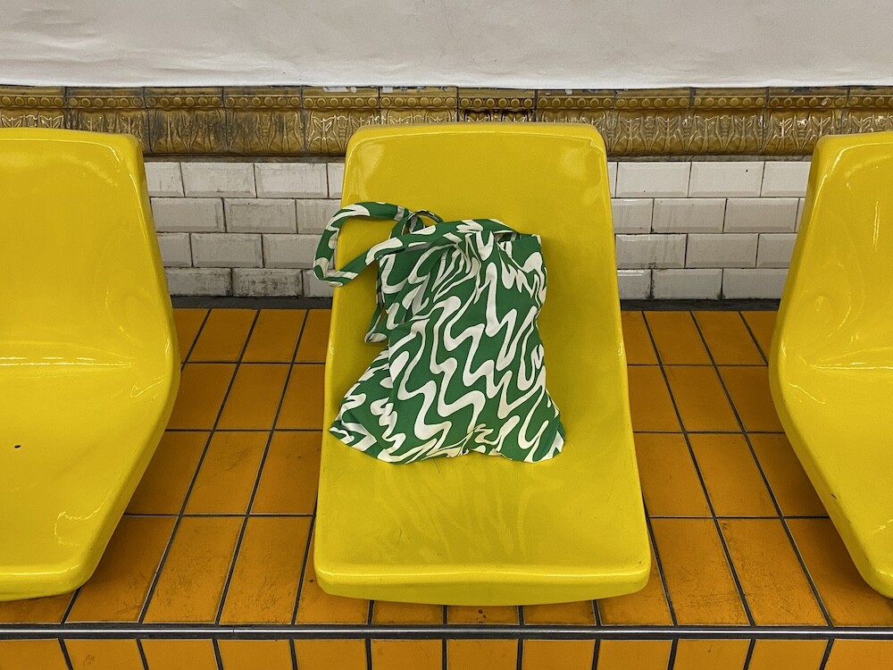 연두빛이 도는 손으로 그린 듯한 하얀 물결 무늬가 그려진 귀여운 에코백이에요. 면에 전체적으로 염색이 아닌, 프린트를 한 원단이라 꼭 약간은 방수가 될 것 같은 표면의 느낌이 특이해요. (물론 방수 처리를 한 원단은 아니기 때문에 실제로 방수 효과가 있지는 않습니다.) 아래쪽에는 MONKI 로고가 깔끔하게 써져 있어요. 꼬마가 그림을 그린 것 같은 귀여운 느낌으로 메시기 좋을 거예요.