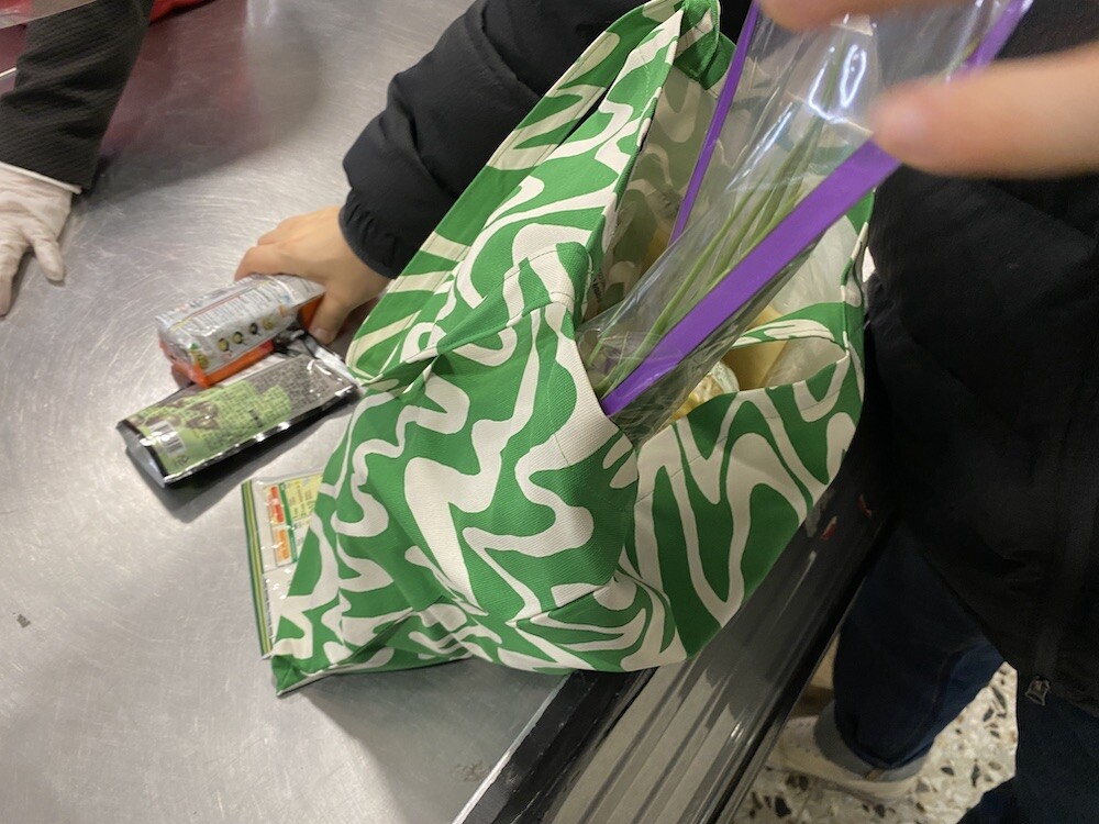 몽키(MONKI) 초록 물결 에코백