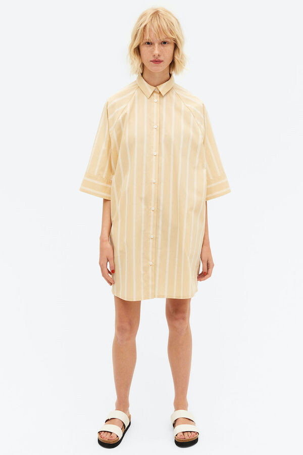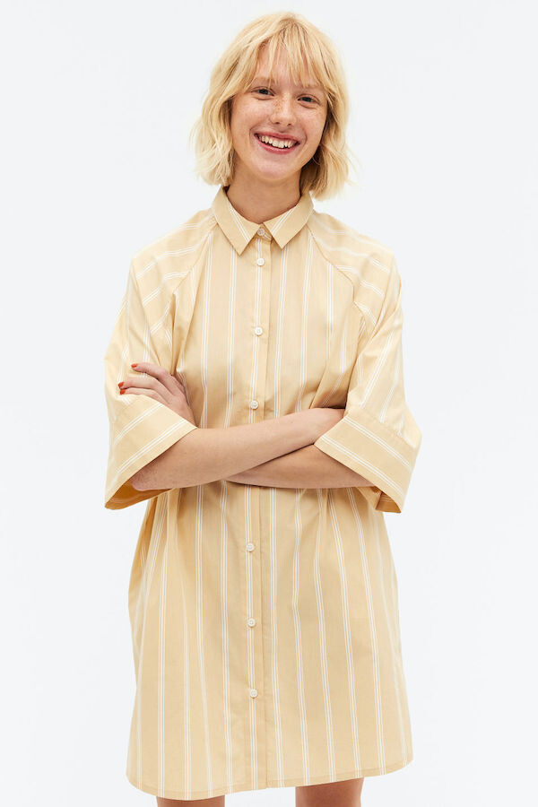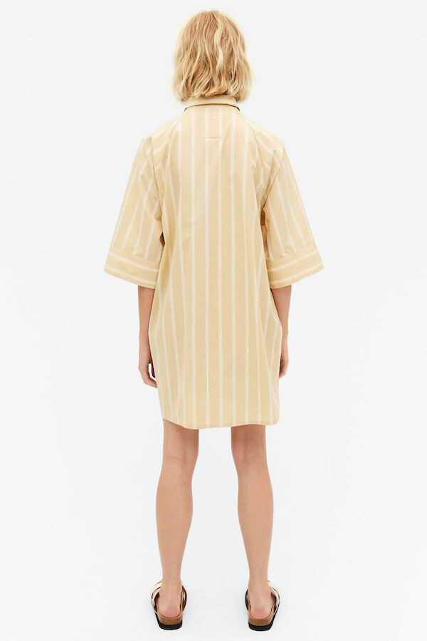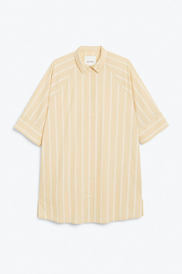 몽키(MONKI) 베이지 스트라이프 면 셔츠 원피스_여성 XS