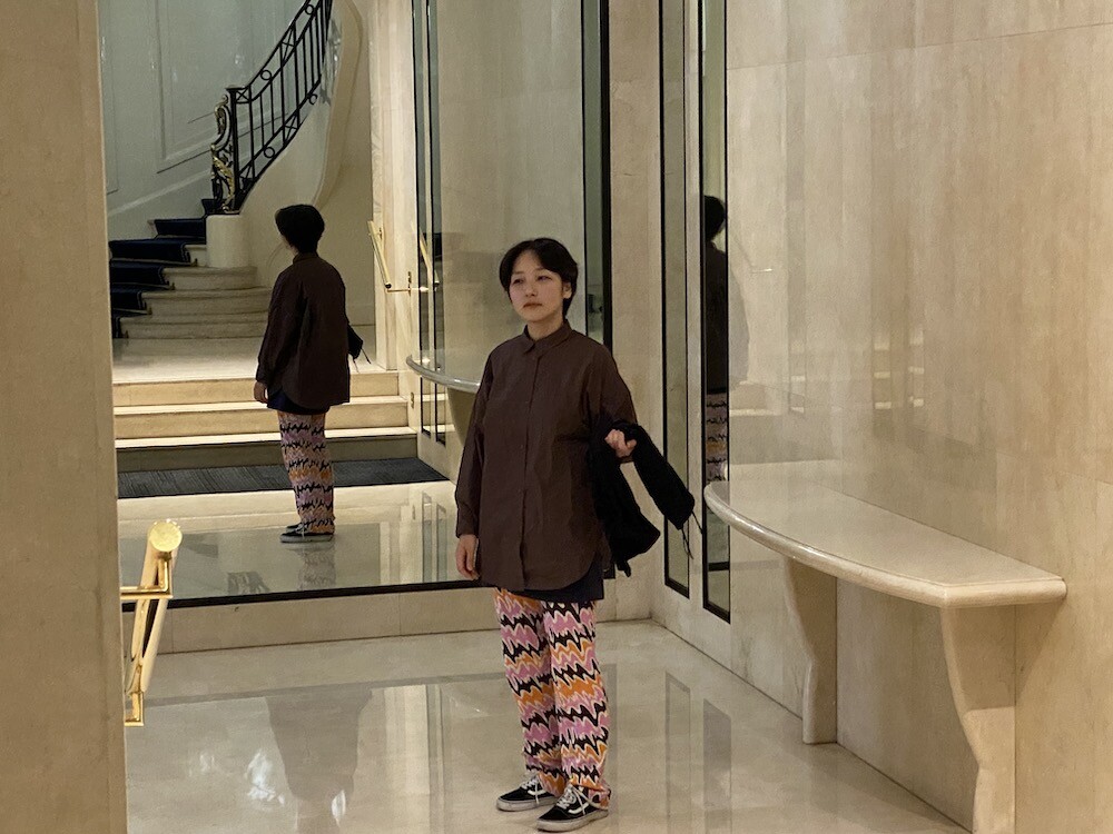 저는 보통 한국 옷 M 사이즈를 입습니다.