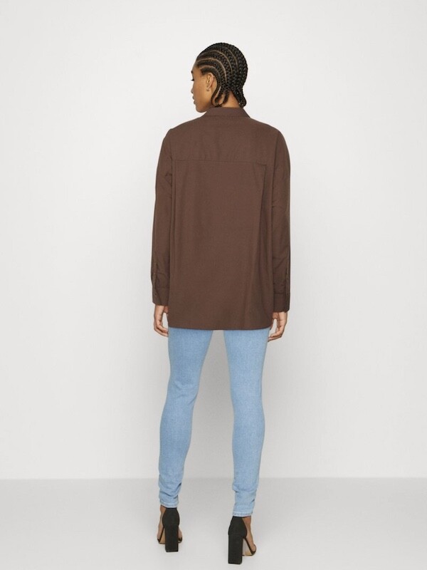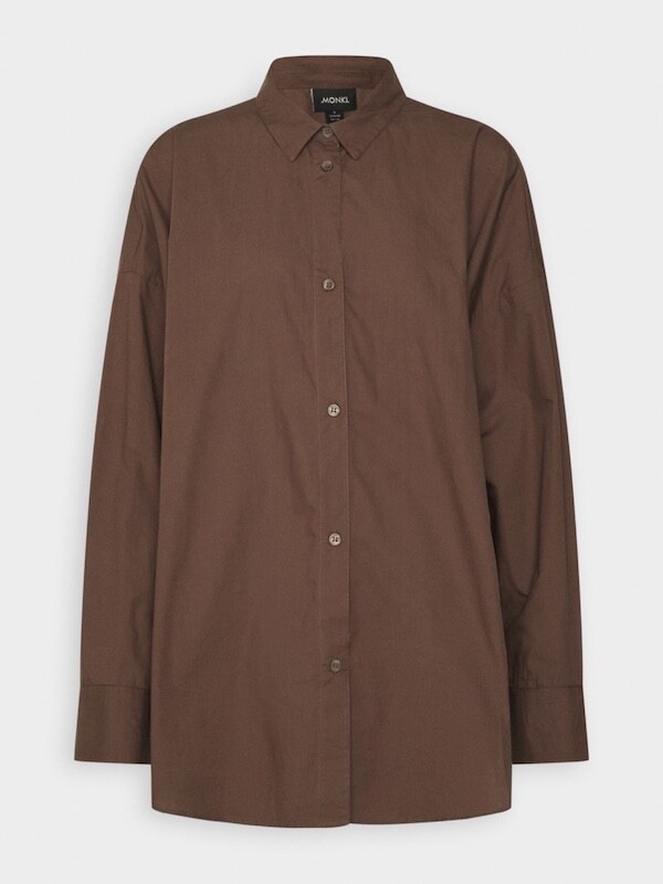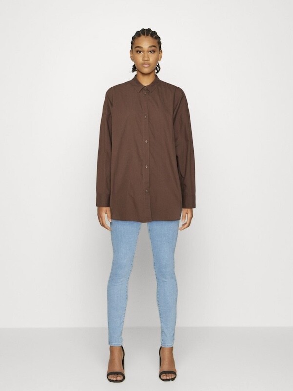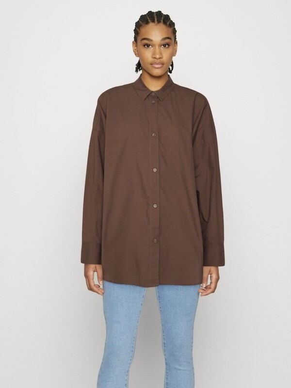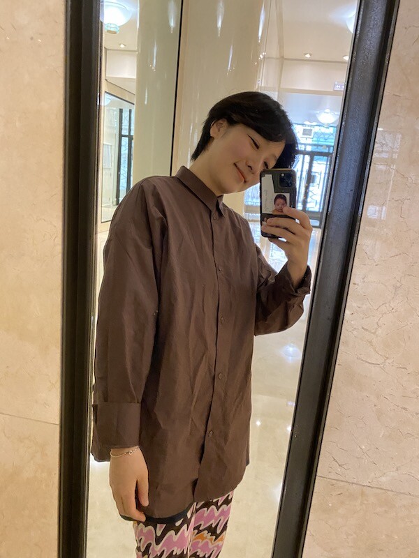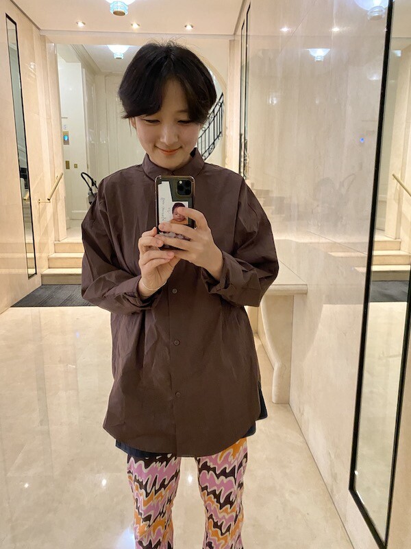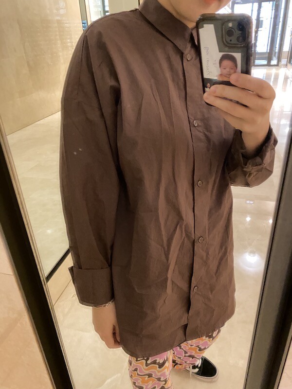 밤색이라는 단어가 딱 잘 어울리는 셔츠입니다. 제가 원래 갈색 옷을 그렇게 좋아하는 편이 아닌데 이 셔츠는 정말 잘 입게 되더라고요. 무난하고 차분한 색의 면 소재 기본 셔츠라 어떤 하의와도 잘 어울리는데 특히 가을 겨울에 예쁠 것 같은 색이에요. 셔츠 단품만 입어도 예쁘고, 원피스 같은 것 안에 입기도, 외투처럼 걸쳐 입기도 좋아서 활용도가 높을 거예요.
