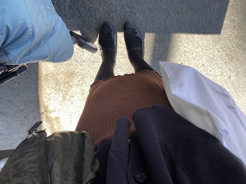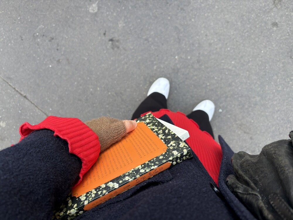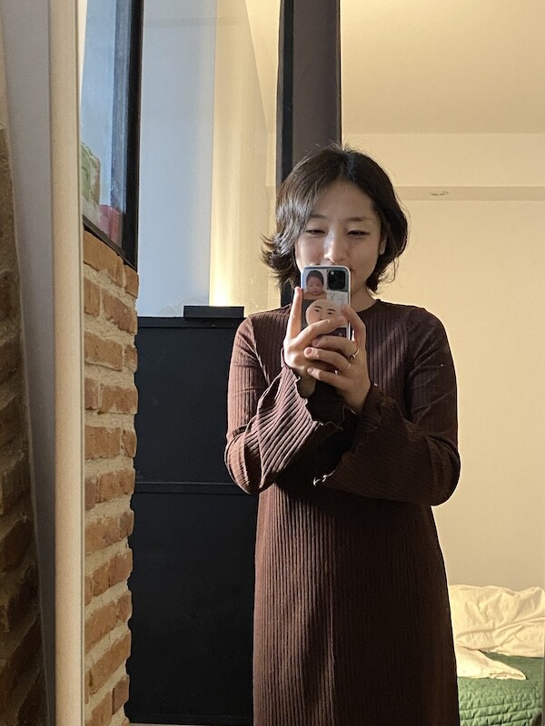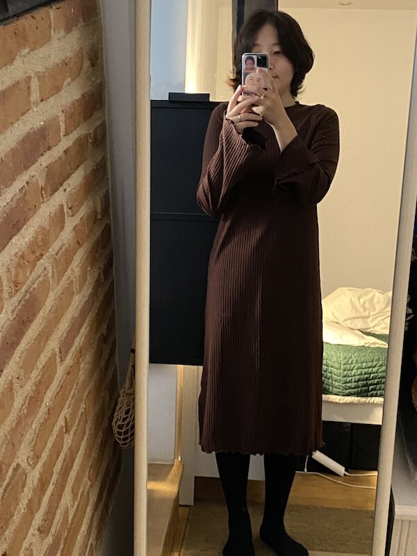 원피스만 단독으로 입어도 예쁘지만 저는 출산 후에 뱃살이 많이 늘어져서 니트와 같이 입는 게 마음 편하더라고요. 올 가을 겨울 교복 원피스가 되지 않을까 하는 생각이 들 정도로 편하고 예뻤어요.