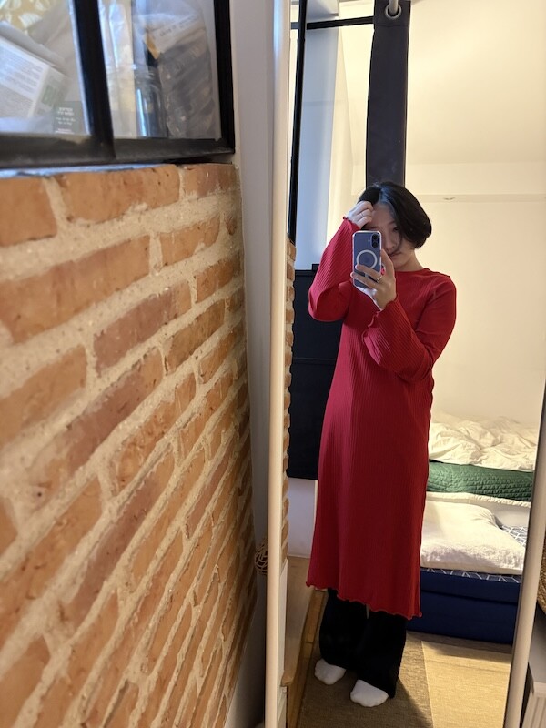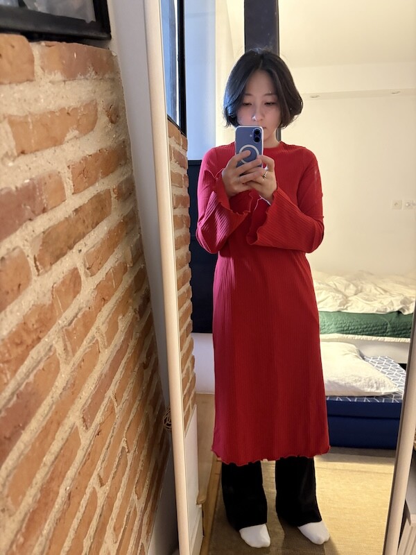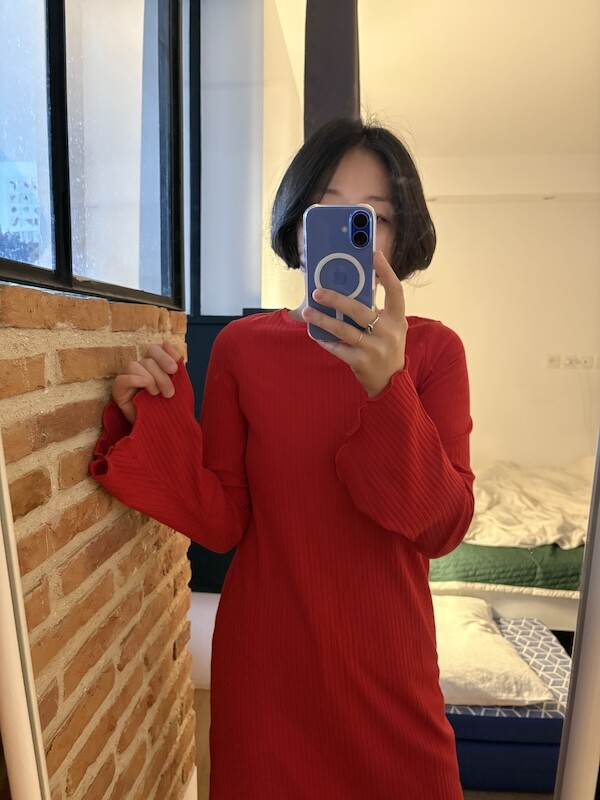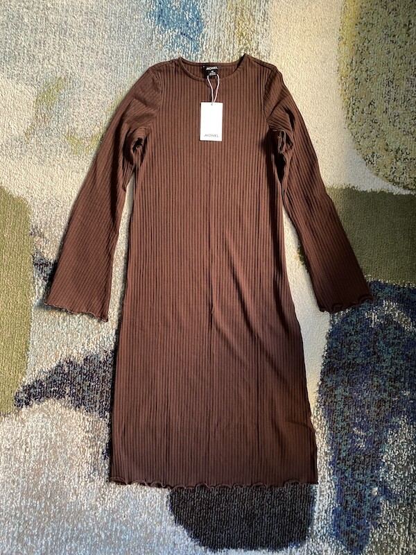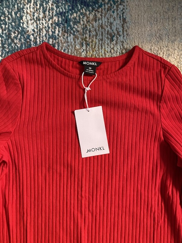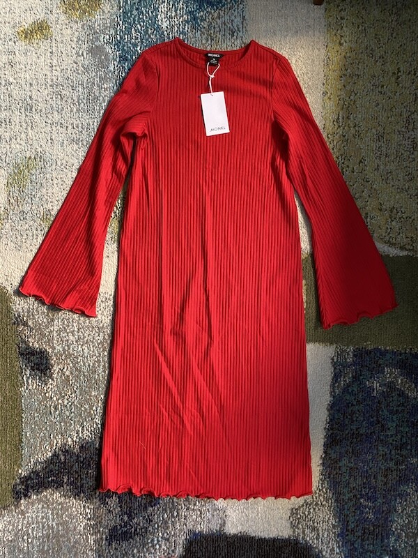 몽키(MONKI) 골지 미들 원피스, 여성 XS 사이즈 2가지 색상(마롱/빨강)입니다.
