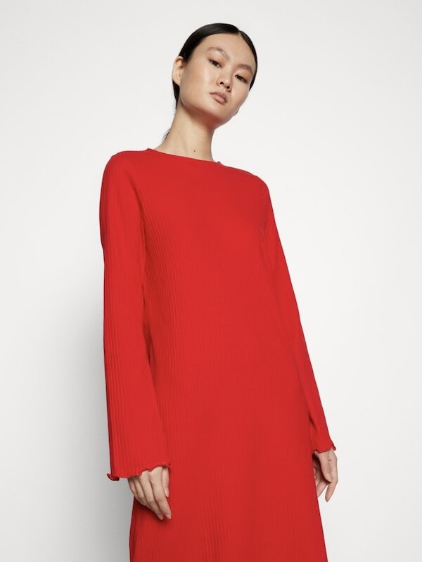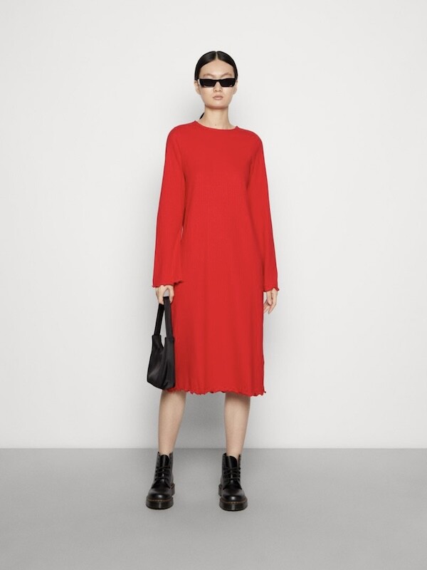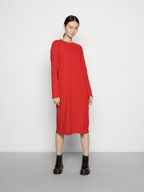 몽키(MONKI) 골지 미들 원피스_여성 XS (마롱/빨강)