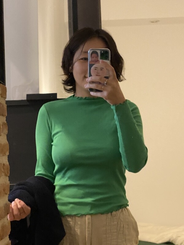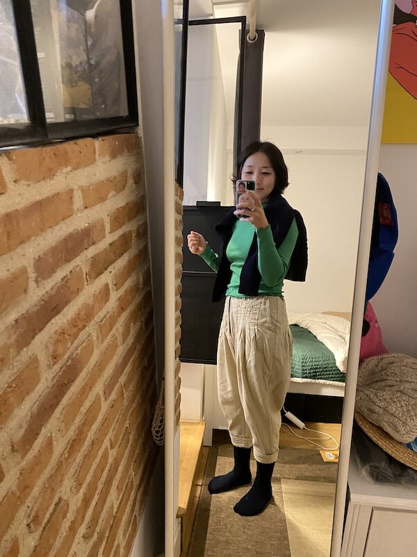 저는 보통 한국 옷 M 사이즈를 입습니다.