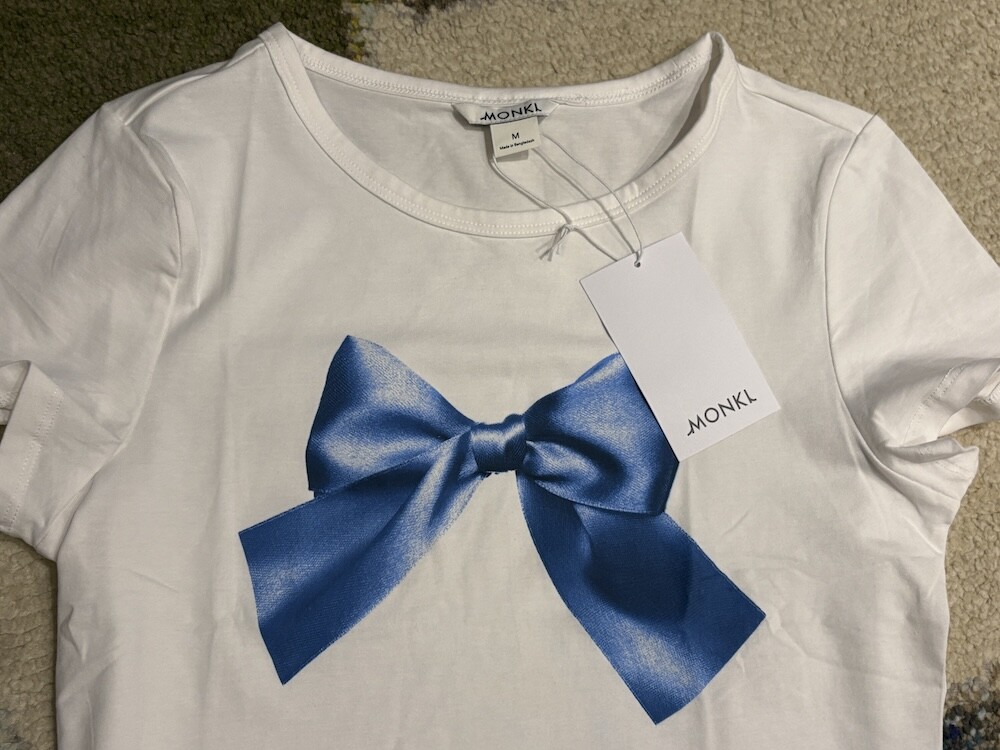 몽키(MONKI) 리본 티셔츠 여성 S, M 사이즈입니다.