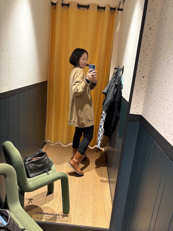저는 보통 한국 옷 M 사이즈를 입습니다.