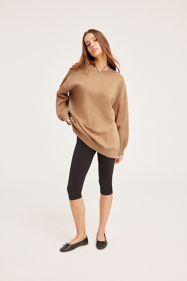 몽키(MONKI) 베이지 오버핏 롱 맨투맨(스웻셔츠)_여성 M
