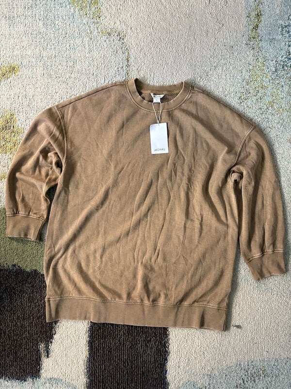 몽키(MONKI) 베이지 오버핏 롱 맨투맨(스웻셔츠) 여성 M 사이즈입니다.