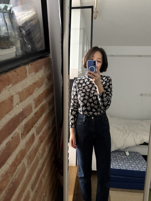 저는 보통 한국 옷 M 사이즈를 입습니다.