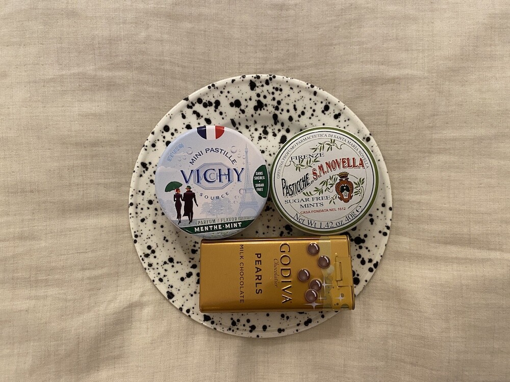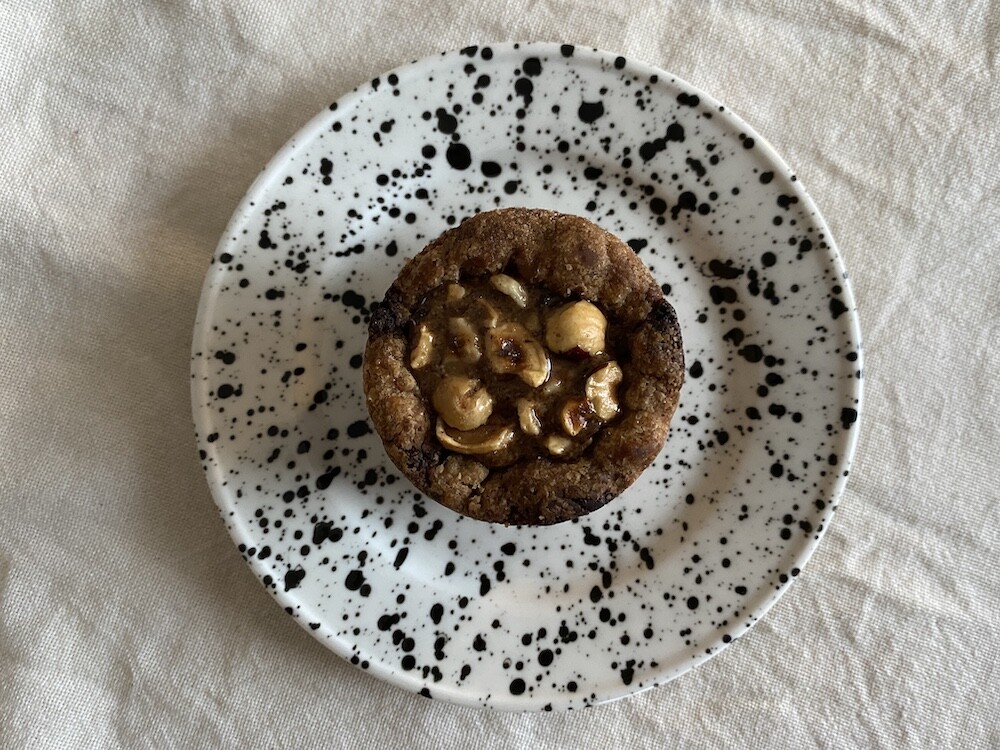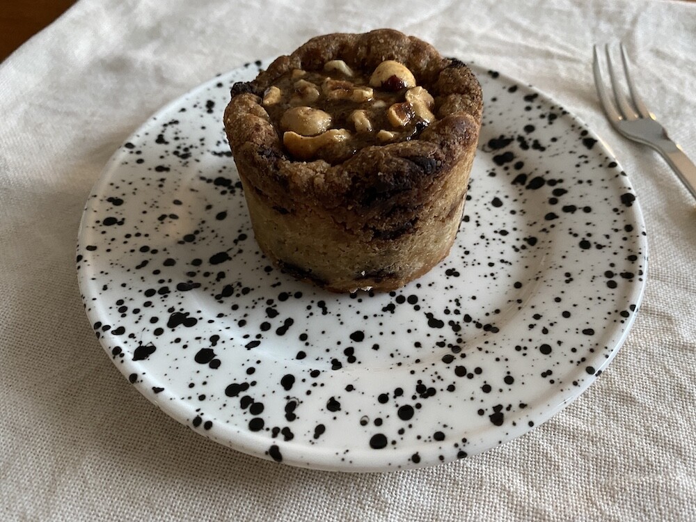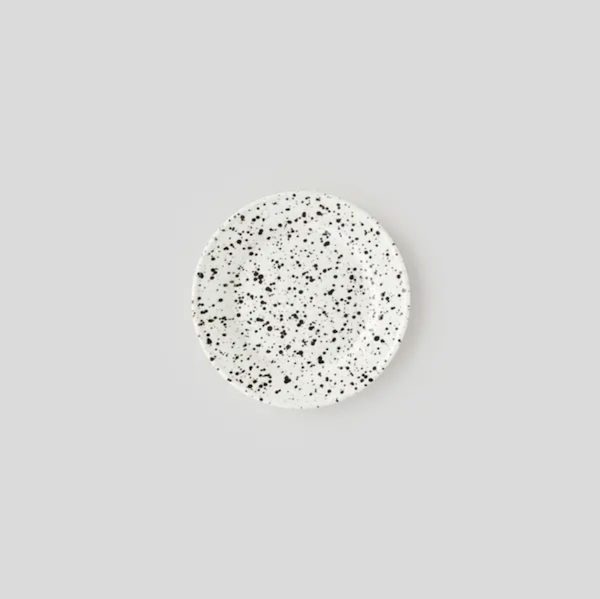 두툼한 두께감이 있는 접시로, 원래 사용 용도는 "빵을 올려놓는 접시" 예요. 빵 오 쇼콜라 하나 정도 올려놓기 딱 좋은 사이즈인데 사실 어떤 식재료를 올려 놓아도 좋아요. 비정형의 점무늬가 있지만 음식의 모양을 방해하지 않는 느낌이라 빵이나 쿠키, 과일 등 어떤 음식에나 다 잘 어울려요.