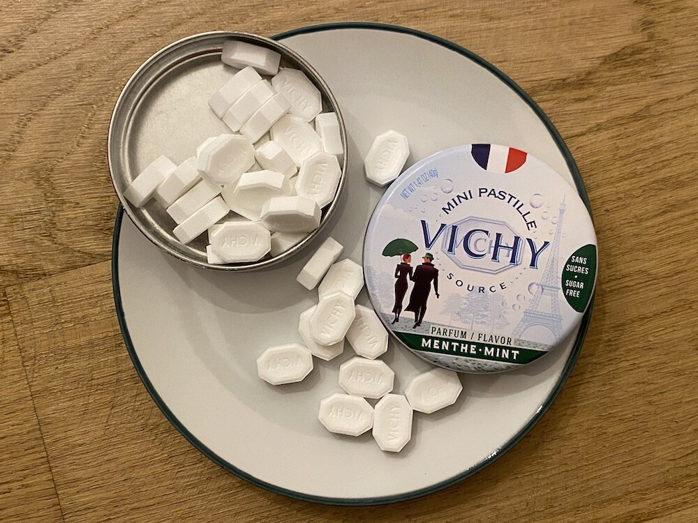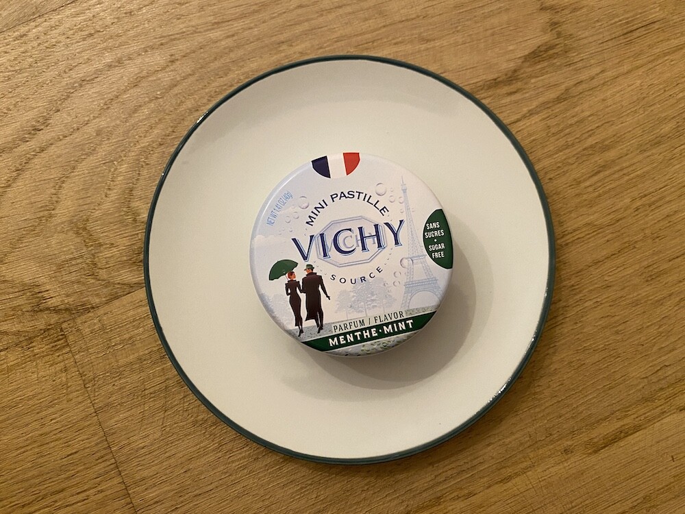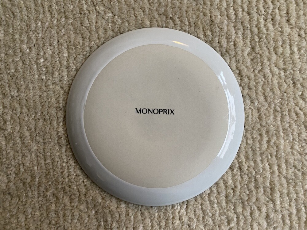 모노프리(MONOPRIX)의 청록 라인 세라믹 빵 접시입니다.