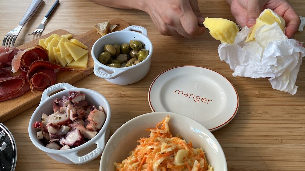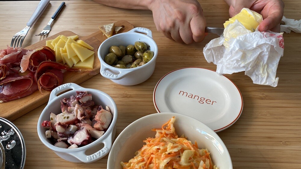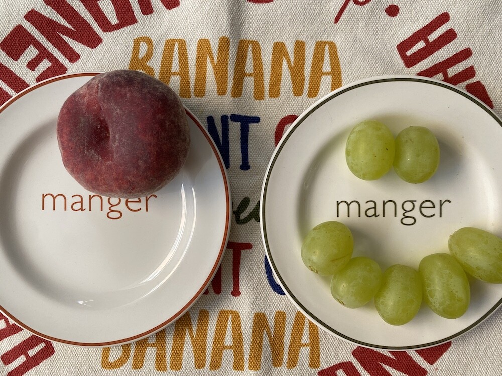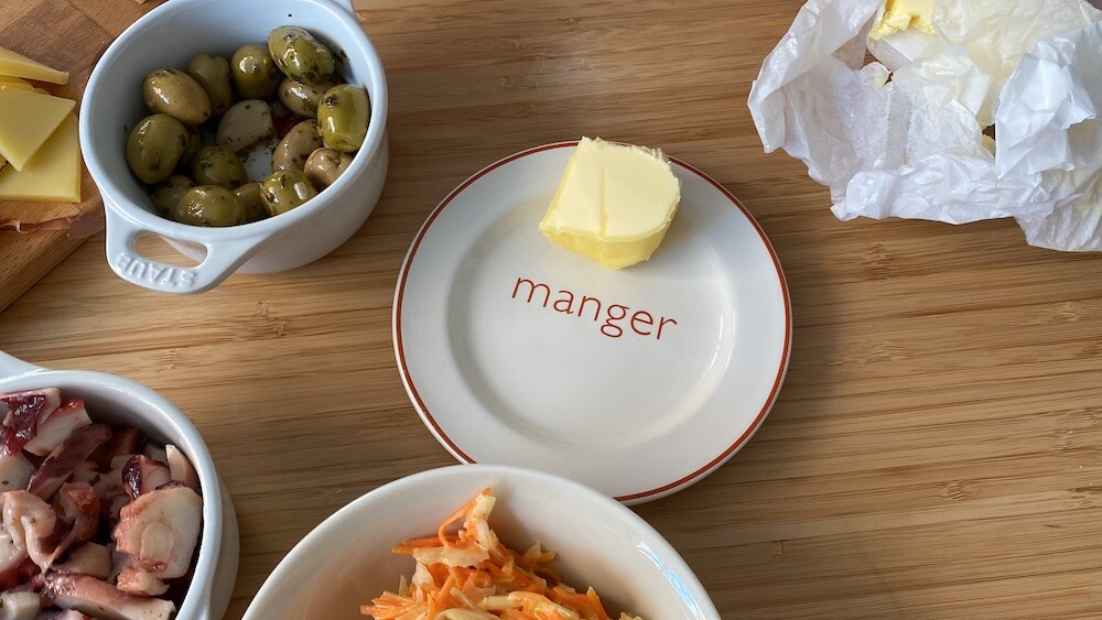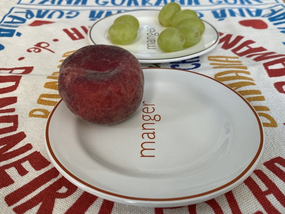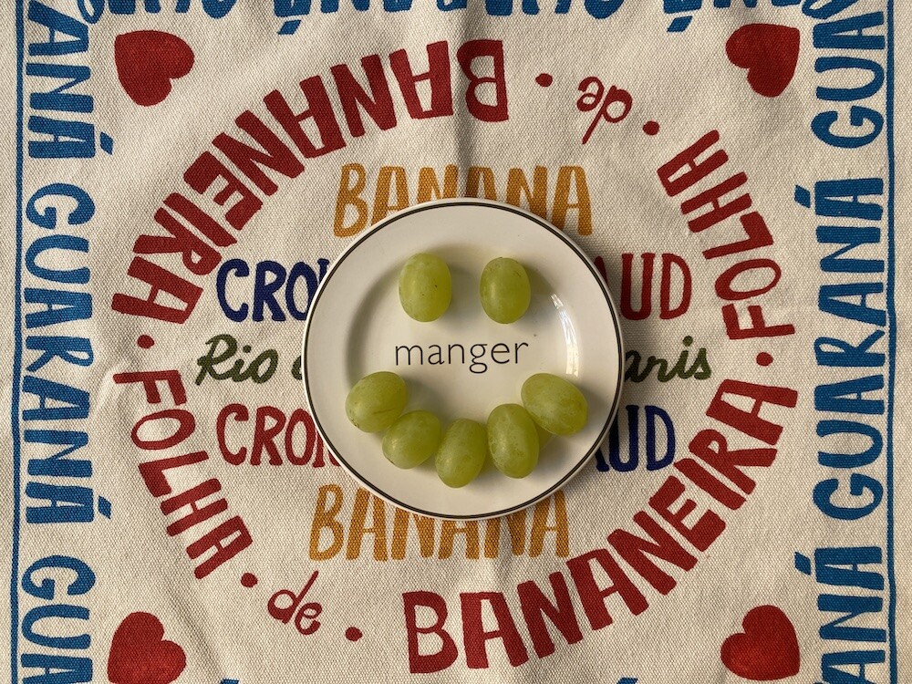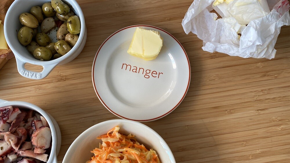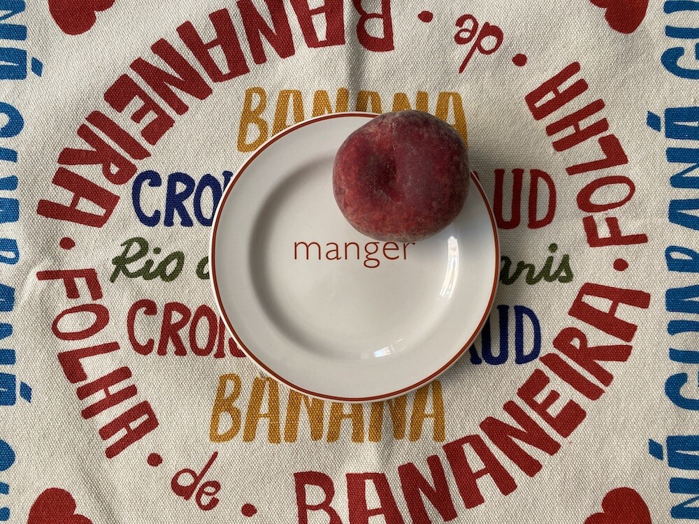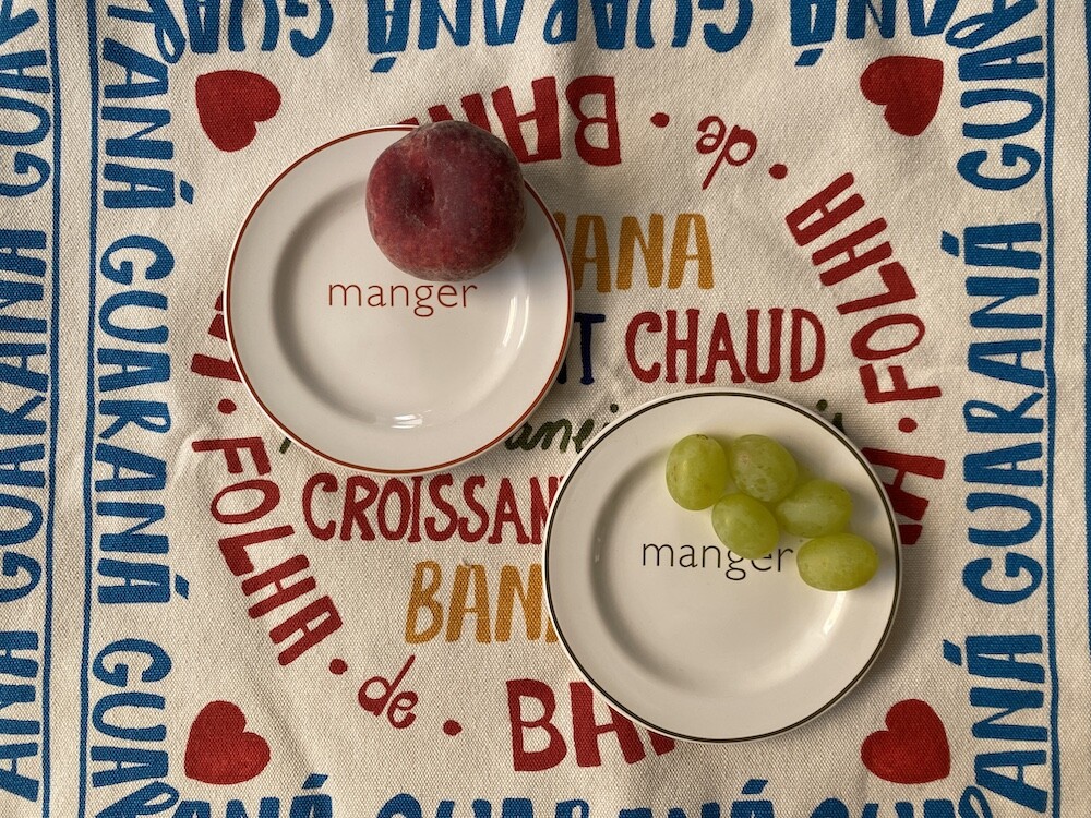 모노프리와 테렌스 콘란(Terence Conran)의 콜라보로 만들어진 세라믹 소재의 접시로, 원래 사용 용도는 "빵을 올려놓는 접시" 예요. 모닝빵 하나 정도 올려놓기 딱 좋은 사이즈인데 사실 어떤 식재료를 올려 놓아도 좋아요. 그릇에 씌여진 'manger'라는 프랑스어는 '먹다'라는 뜻의 동사예요. 이 그릇 위에 올려진 어떤 음식이라도 맛있게 먹을 수 있을 것 같은 기분이 드네요. 완전 흰색이 아닌 크림색의 접시라 더 예쁜 것 같아요.