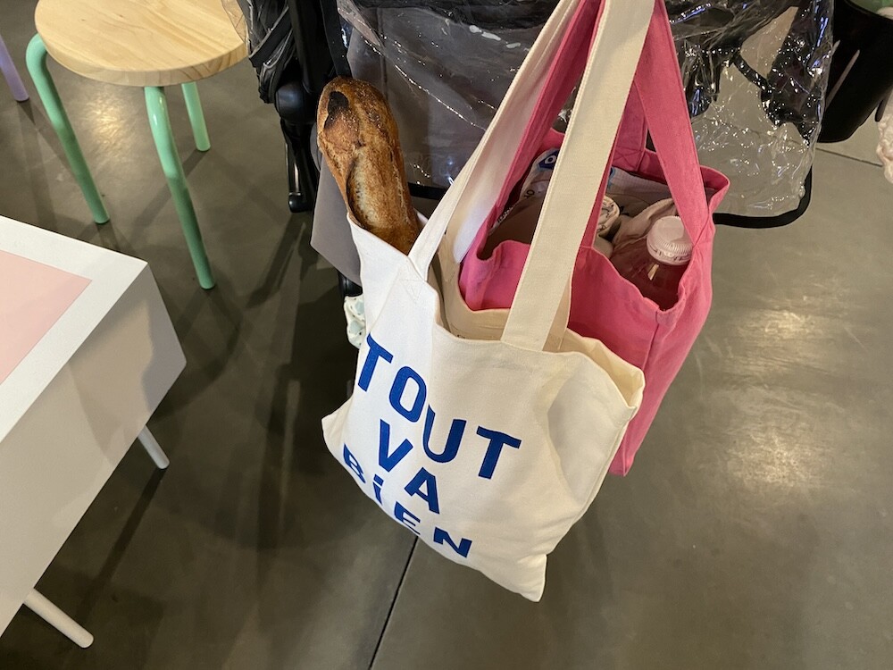 클레어 비비에 x 모노프리(Clare V. x MONOPRIX) 뚜 바 비앙 TOUT VA BIEN 키즈 에코백입니다.