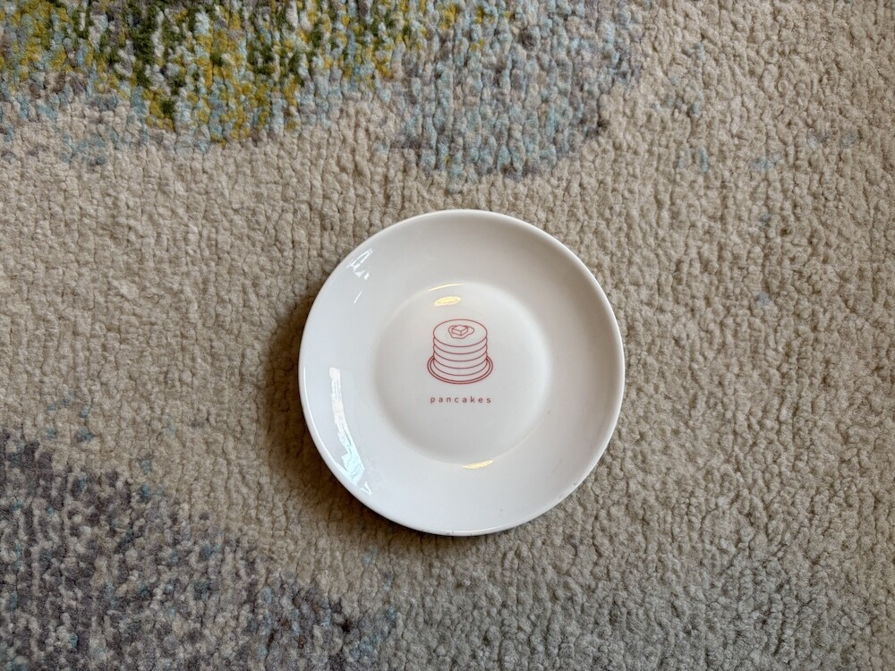 팬케이크 그림이 그려진 귀여운 그릇이에요. 작은 사이즈의 살짝 오목한 접시에 빨강색으로 그려진 팬케이크 그림이 특징인데, 특히 이 그림에는 팬케이크 위에 버터까지 올려져 있어서 진짜 귀여워요. 빵 접시로 나온 제품이지만 작은 팬케이크 뿐 아니라 쿠키, 초콜릿 같은 작은 간식들을 올려 놓고 먹기 좋을 거예요.