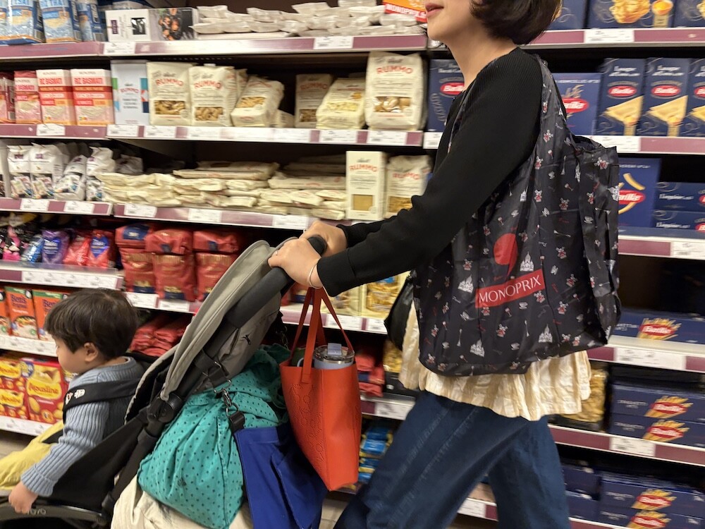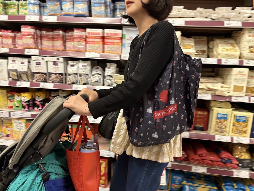 장볼 때 가볍게 들 수 있는 장바구니입니다. 아마 프랑스 사람들이 가장 많이 드는 가방을 꼽으라면 모노프리 가방을 꼽을 수 있을 거예요. 그만큼 대중적이고, 길거리에서 쉽게 볼 수 있는 가방입니다. 계속해서 새로운 패턴의 장바구니가 나오는데, 지나간 모양은 다시 나오지 않기 때문에 마음에 드는 게 있을 때 사야 해요. 작게 접어 가방에 넣어 가지고 다니다가 필요할 때 꺼내 쓰기 아주 좋을 거예요.