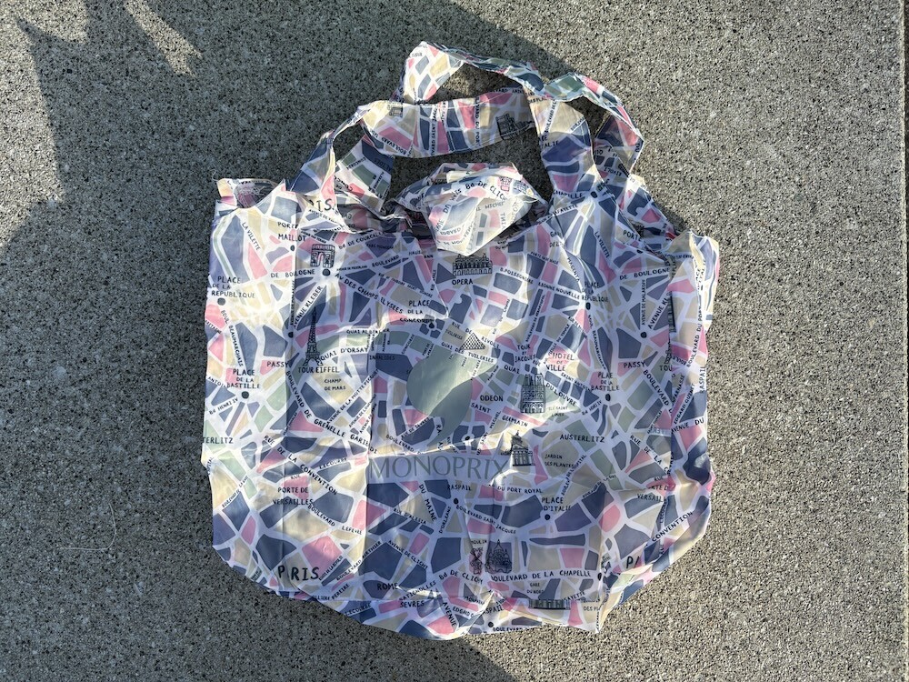 장볼 때 가볍게 들 수 있는 장바구니입니다. 아마 프랑스 사람들이 가장 많이 드는 가방을 꼽으라면 모노프리 가방을 꼽을 수 있을 거예요. 그만큼 대중적이고, 길거리에서 쉽게 볼 수 있는 가방입니다. 계속해서 새로운 패턴의 장바구니가 나오는데, 지나간 모양은 다시 나오지 않기 때문에 마음에 드는 게 있을 때 사야 해요. 작게 접어 가방에 넣어 가지고 다니다가 필요할 때 꺼내 쓰기 아주 좋을 거예요.