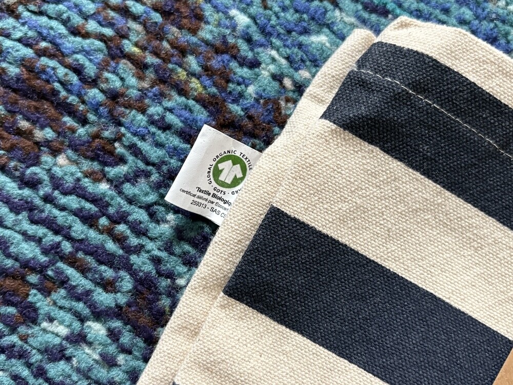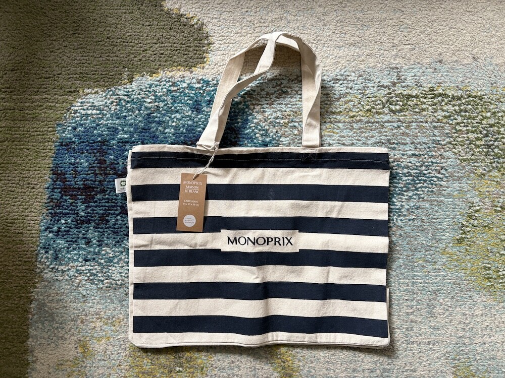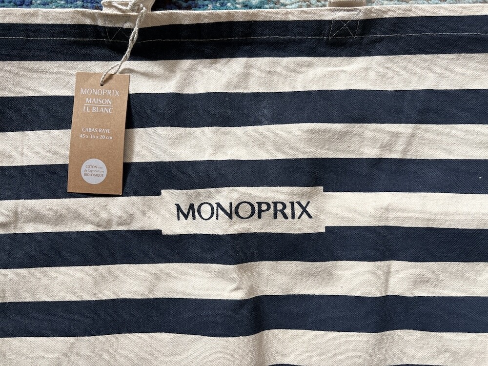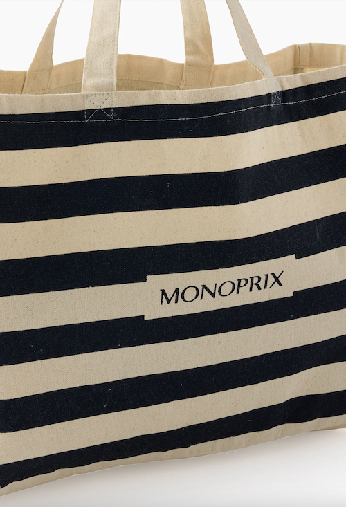 모노프리(Monoprix) 오가닉 면 스트라이프 에코백입니다.