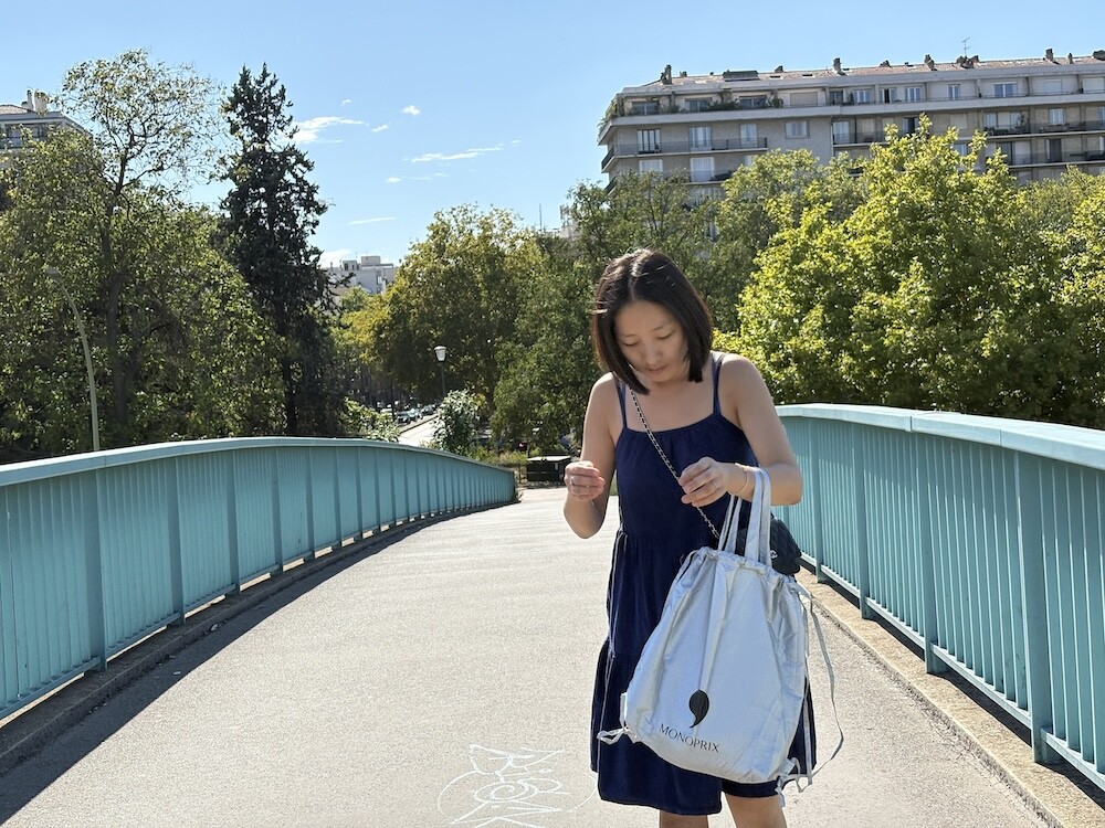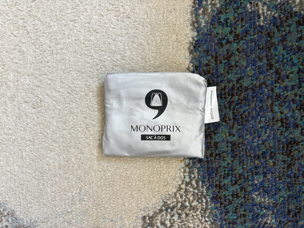 장볼 때 가볍게 들 수 있는 장바구니인데 백팩으로도 멜 수 있는 제품이에요. 맑은 은색이 예쁜데다가 팔에 걸 수도, 어깨에 멜 수도 있어서 편안하고 다양하게 사용하실 수 있으실 거예요. 아마 프랑스 사람들이 가장 많이 드는 가방을 꼽으라면 모노프리 가방을 꼽을 수 있을 거예요. 그만큼 대중적이고, 길거리에서 쉽게 볼 수 있는 가방입니다. 계속해서 새로운 패턴의 장바구니가 나오는데, 지나간 모양은 다시 나오지 않기 때문에 마음에 드는 게 있을 때 사야 해요. 작게 접어 가방에 넣어 가지고 다니다가 필요할 때 꺼내 쓰기 아주 좋을 거예요.