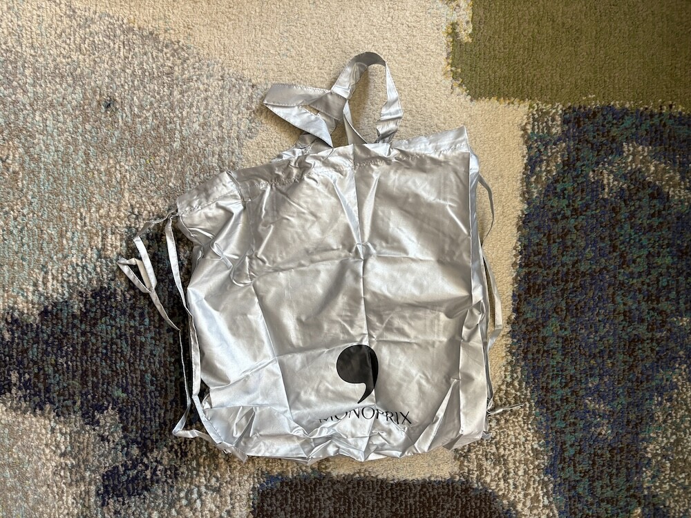 모노프리(MONOPRIX) 실버 장바구니 백팩입니다.