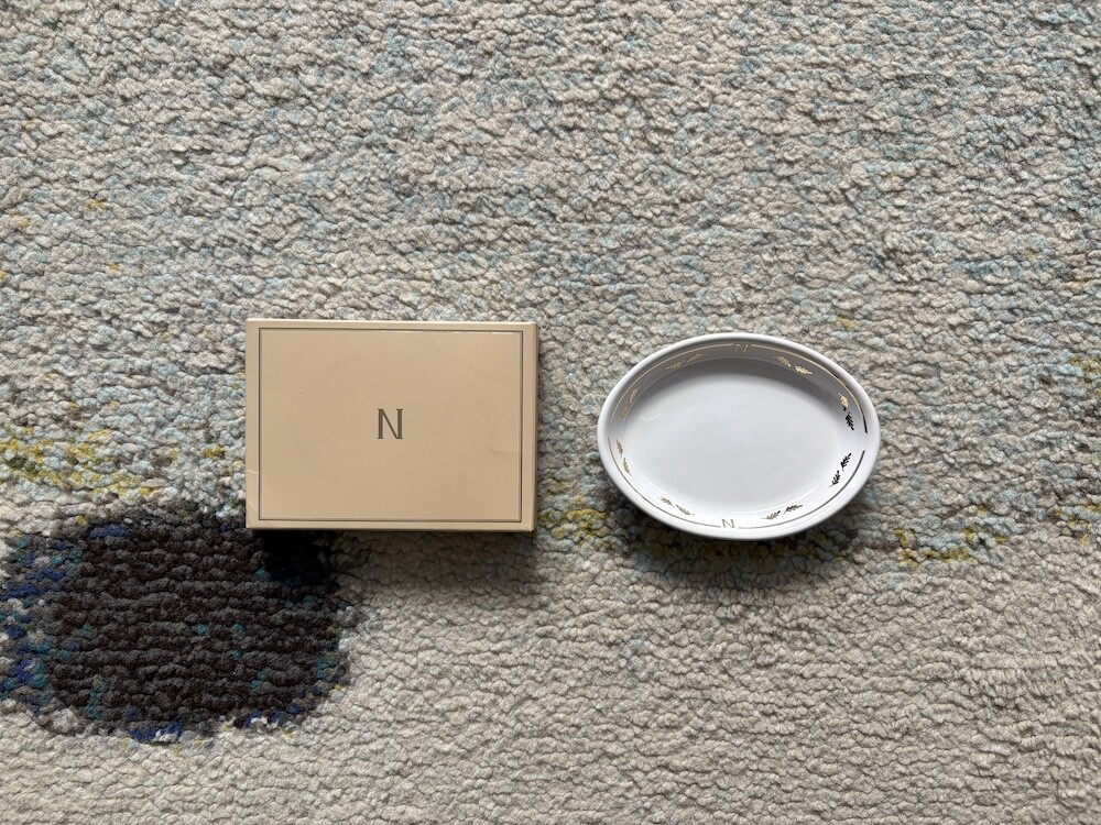 원래 나온 용도대로 비누 받침으로 쓰셔도 좋지만, 저는 작은 물건들을 담아 두는 용도로 쓰니 더 예쁘고 마음에 들더라고요. 반지, 목걸이, 귀걸이 같은 장신구들을 올려 놓기에 좋아요. 박스에 포장되어 있어서 선물용으로도 좋을 것 같습니다.