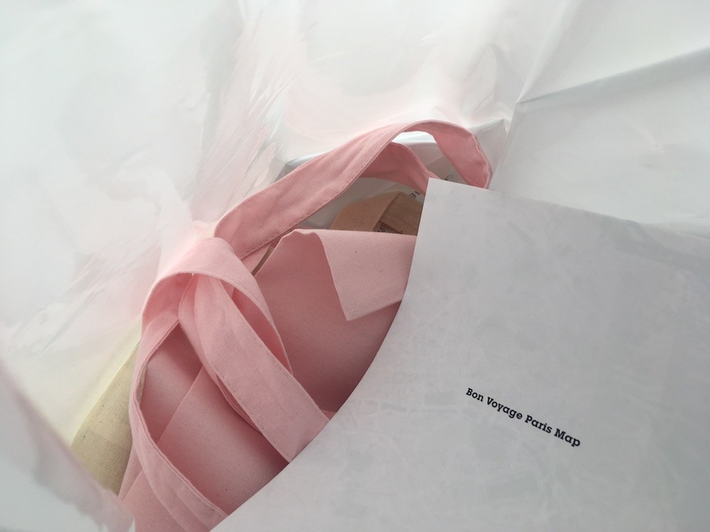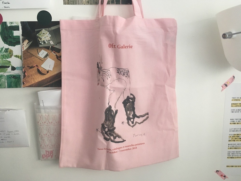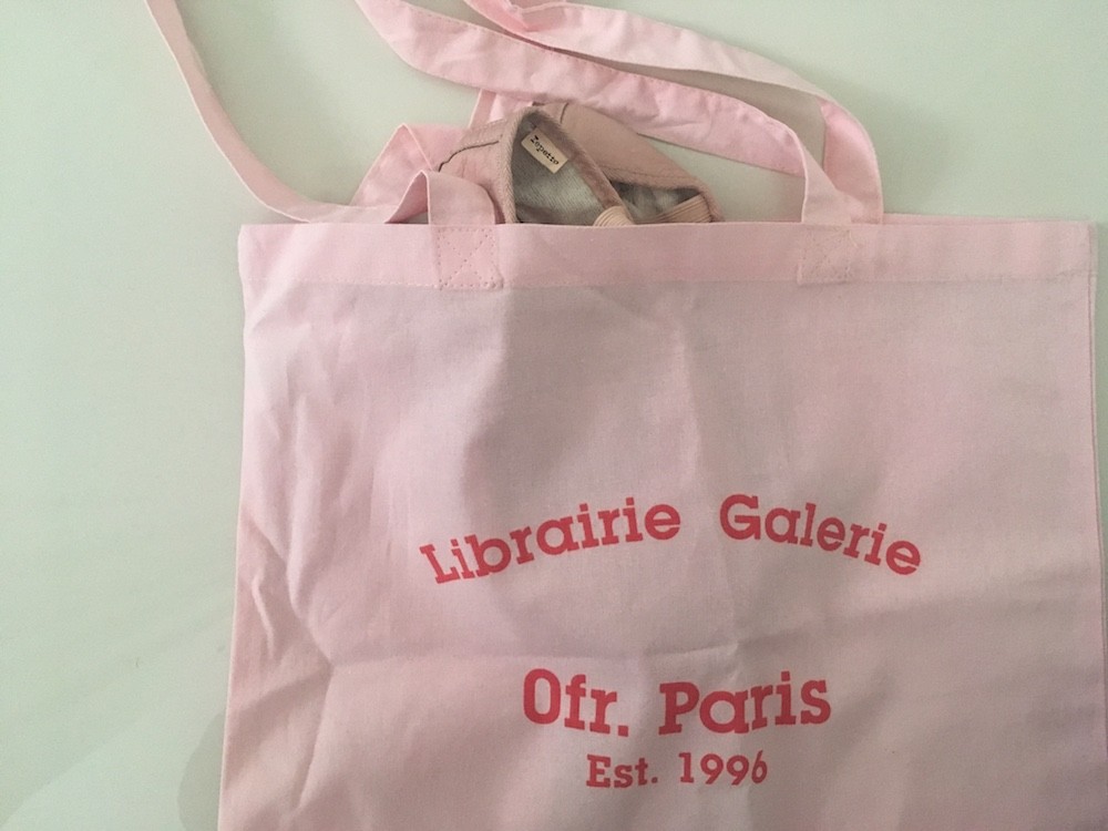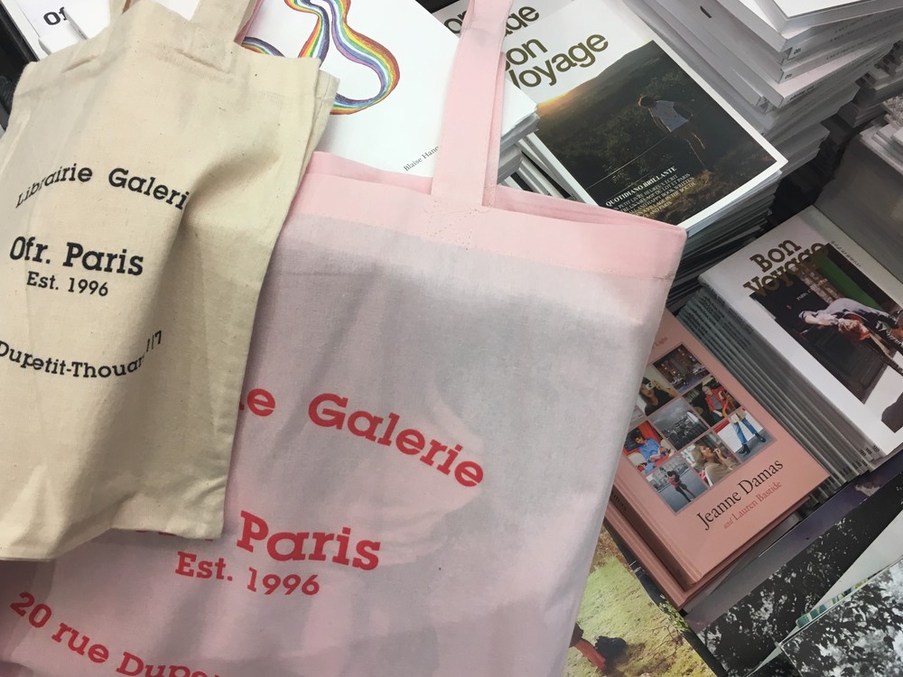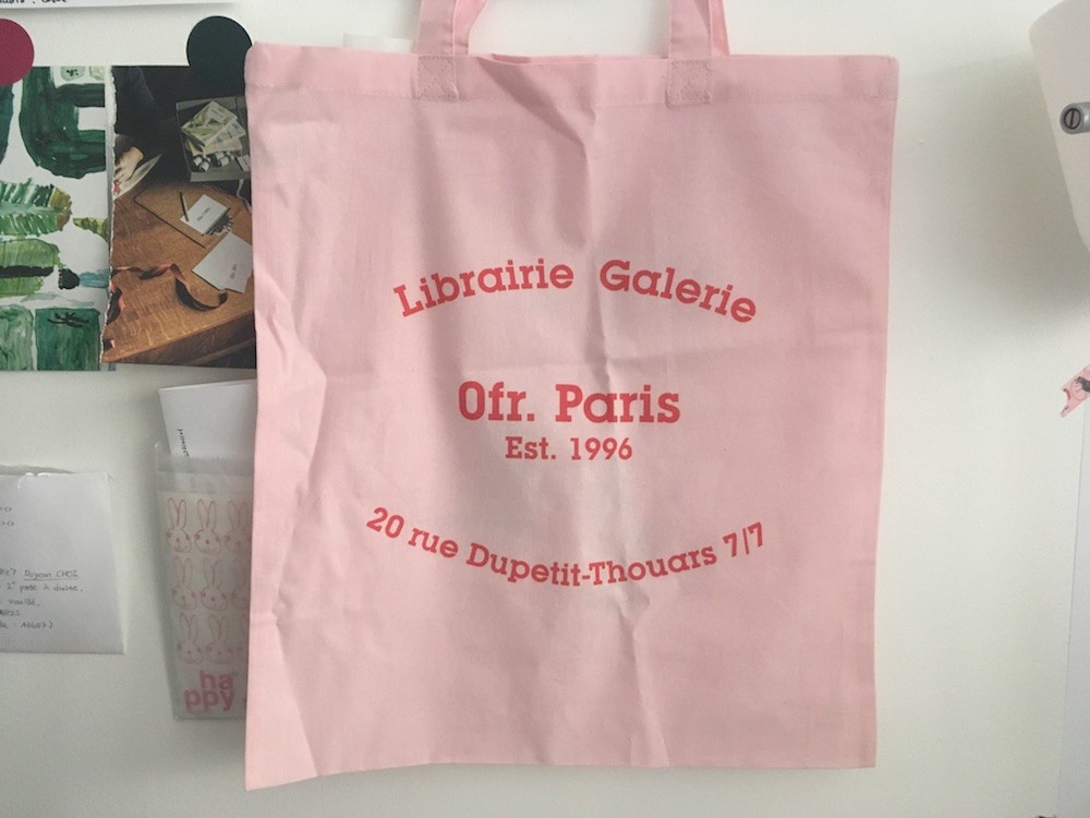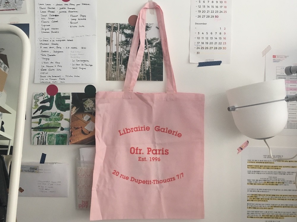 다양한 디자인 서적 및 잡지들을 볼 수 있는 파리 3구의 서점, Ofr. Paris의 핑크 에코백입니다.