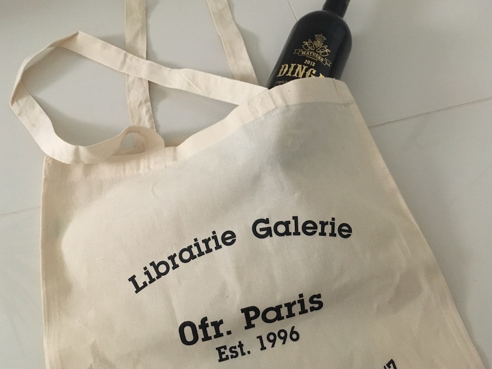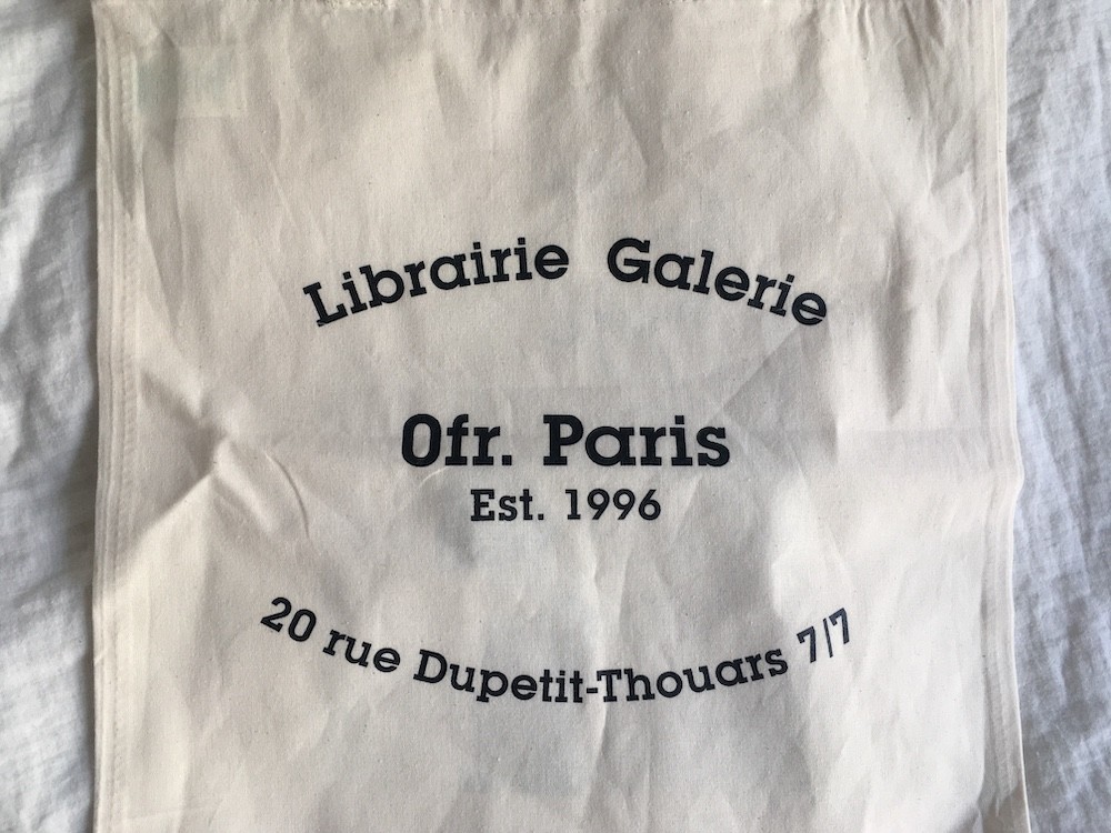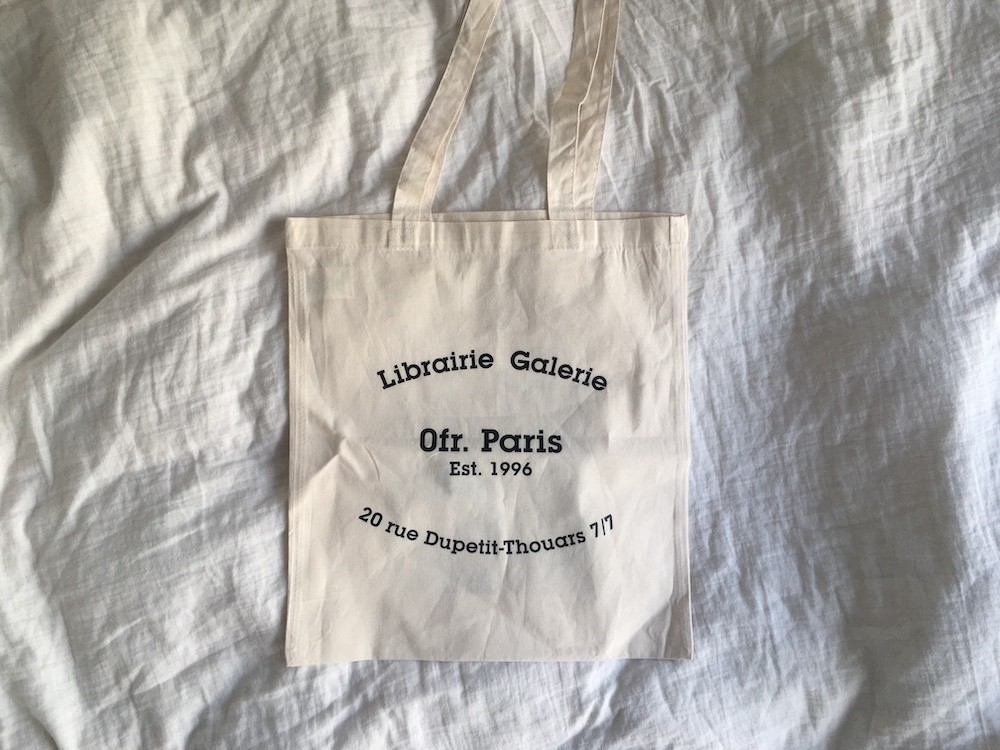 Ofr. Paris의 에크루색, 뒷면 사진 에코백입니다. 2018년 Ofr 서점의 메인 사진이 프린트된 제품이에요.