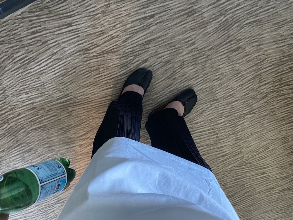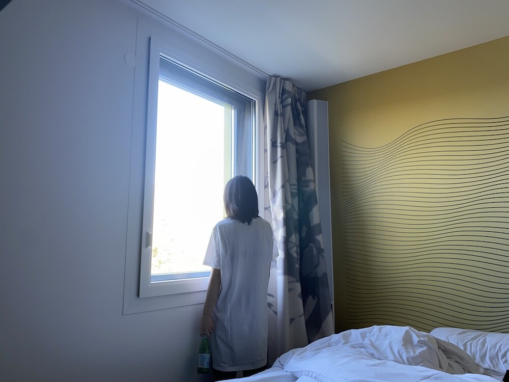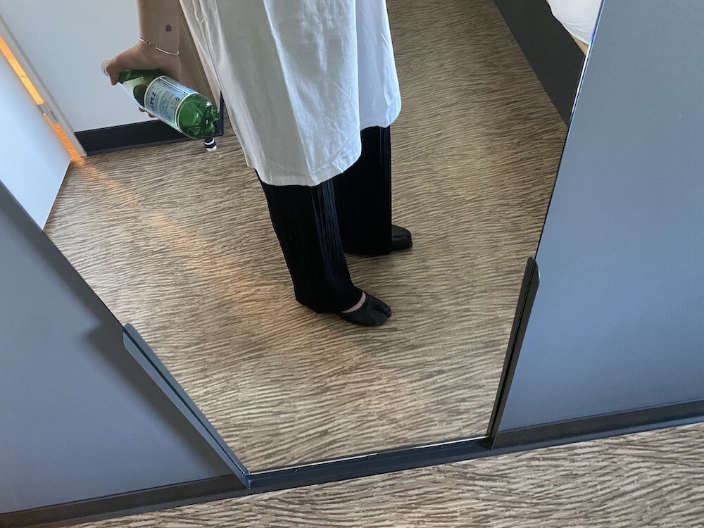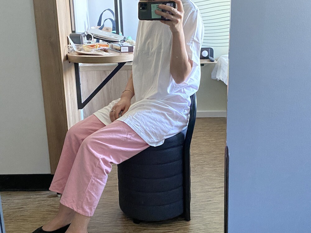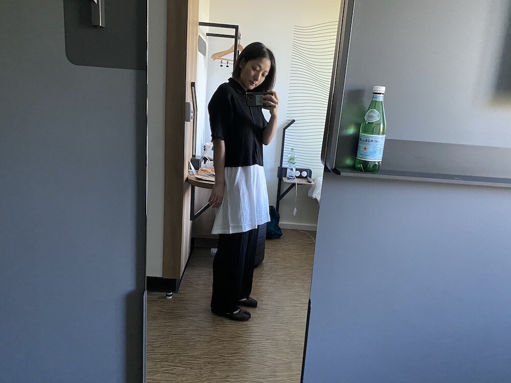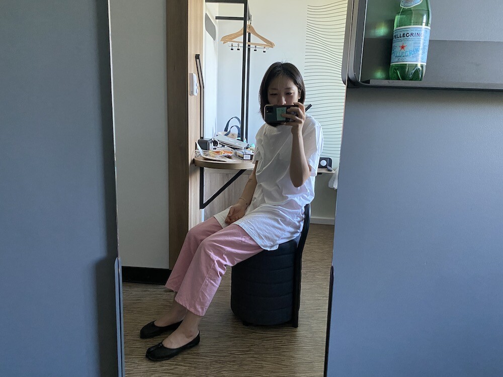 두꺼운 원단이 아니라 비침이 있어요. 저는 속옷이 비쳐도 크게 상관 안 하기 때문에 그냥 입지만, 안에 슬립 같은 것 입으시고 티셔츠를 입으시면 부담 없이 원피스처럼 연출하실 수 있으실 거예요. 레이어드용으로 입으셔도 예뻐요.