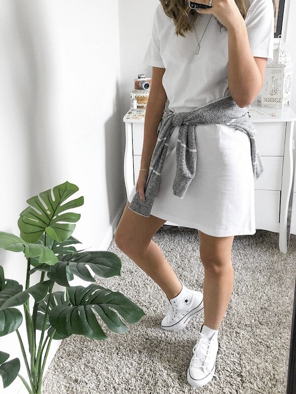 깔끔한 화이트 롱 티셔츠, 함께 입어요!