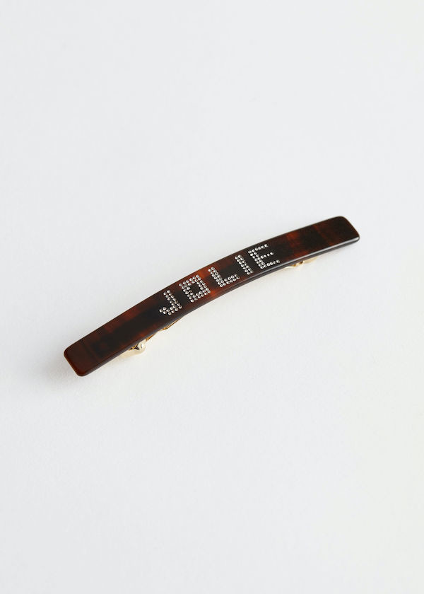 제가 이런 스타일의 머리핀을 하고 싶어서 꽤 오래 찾았는데 드디어 앤 아더 스토리즈에서 찾았네요! 두께가 얇아서 부담스럽지 않게 착용할 수 있고, 글씨까지 큐빅으로 예쁘게 써져 있어서 사계절 내내 잘 사용할 수 있을 것 같아요.