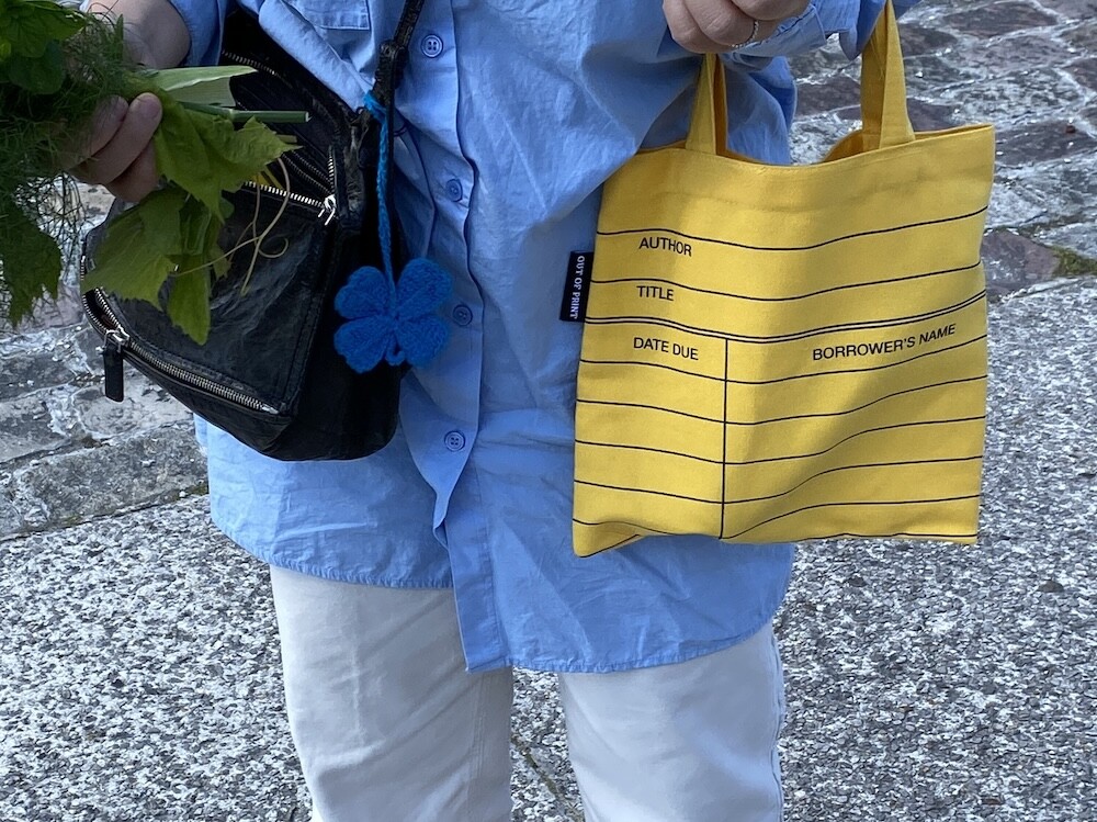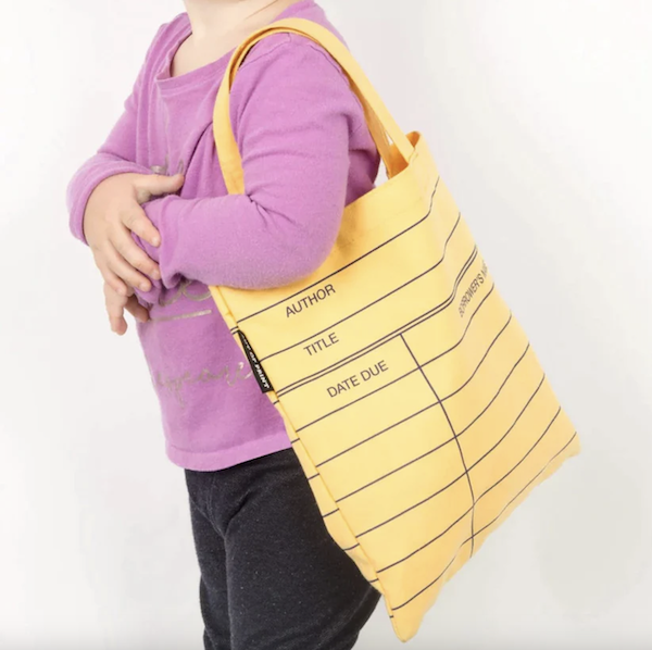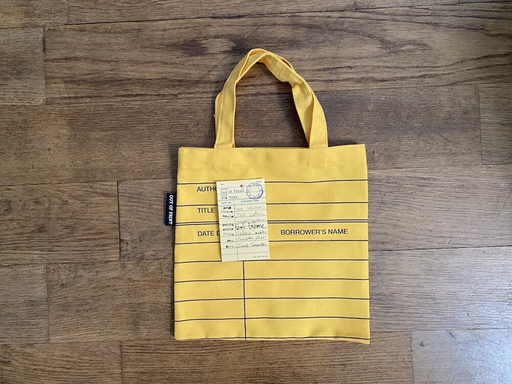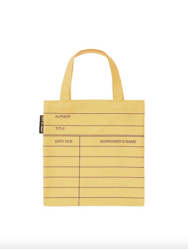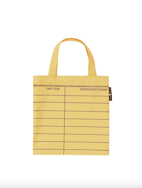 저자, 책 이름, 대출 날짜, 대출인 등을 적을 수 있는 도서관 대출 카드 모양의 미니 토트백이에요. 대출 카드를 확대해서 들고 다니는 것 같은 느낌을 주는 에코백이라 독특한데, 특히 이게 책을 넣어 다닐 수 있는 북 백으로 나온 제품이라 더 위트있게 느껴지는 것 같아요. 보통 나오는 북백들과는 달리 가방이 정사각형 모양이라서 책을 여러 권 넣어 들 수 있어서 좋아요.