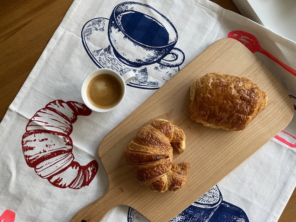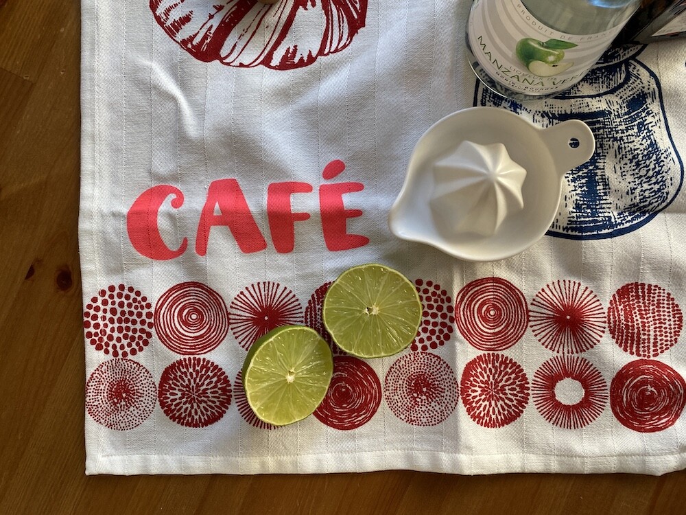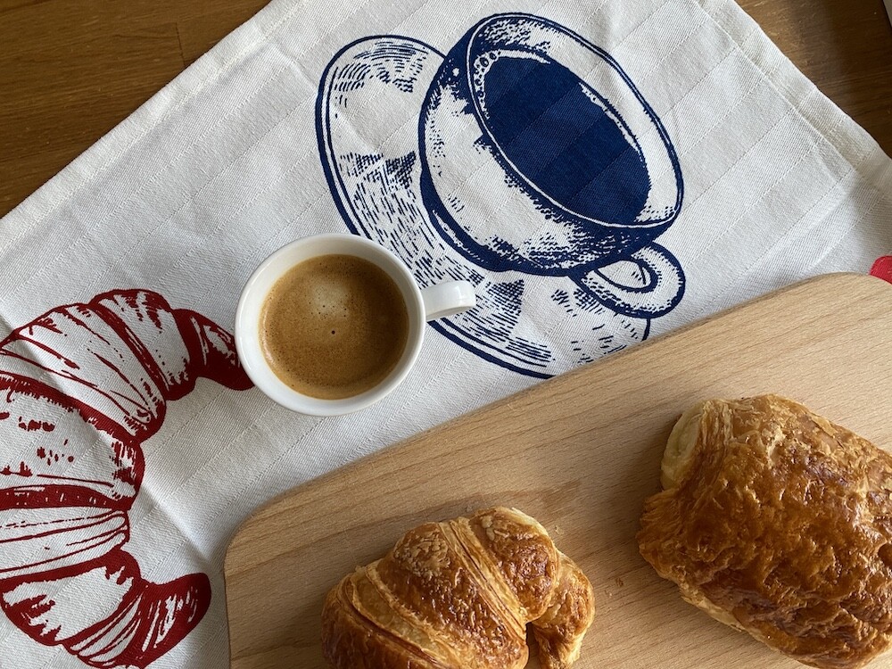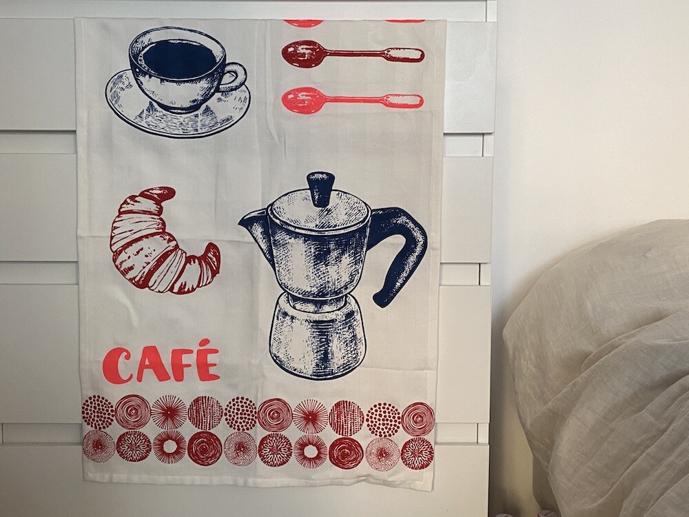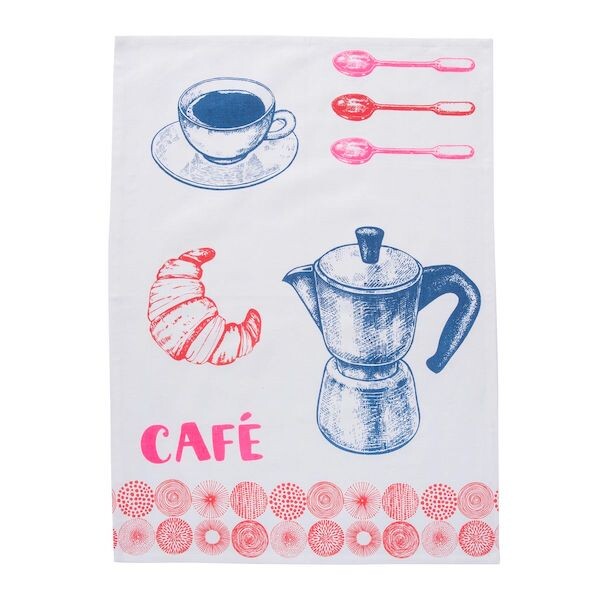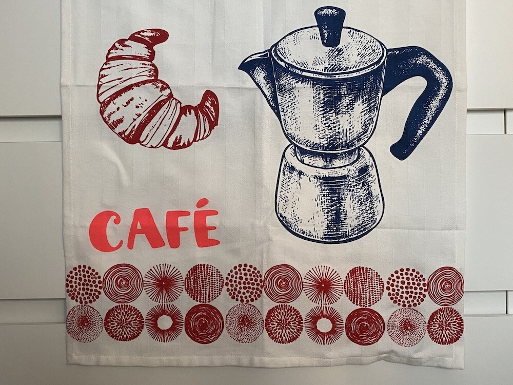 맨 처음 이 똑숑(키친 클로스)을 보았을 때 프랑스어로 CAFÉ라고 써져 있어서 당연히 프랑스 제품일 거라고 생각했어요. 그래서 우선 구매를 한 후 찾아보니 독일 브랜드더라고요. 빨강, 파랑, 분홍색이 주는 경쾌한 컬러감과 커피, 크로와상 같은 그림들이 잘 어우러져 보기만 해도 기분이 좋아요.