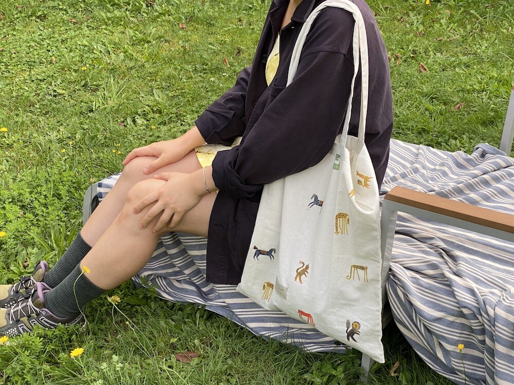 귀여운 동물들이 그려진 에코백입니다. 어린이들이 좋아할 만한 동물들인데 그림체가 마냥 유치하지만은 않아서 어른들이 사용하기에 귀엽고 예뻐요. 넉넉한 사이즈로 짐 많은 날에 사용하시기 좋을 거예요.
