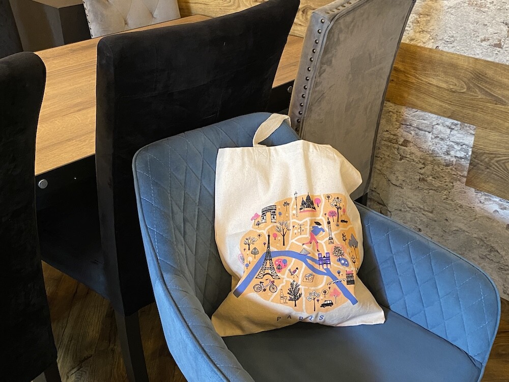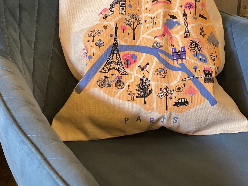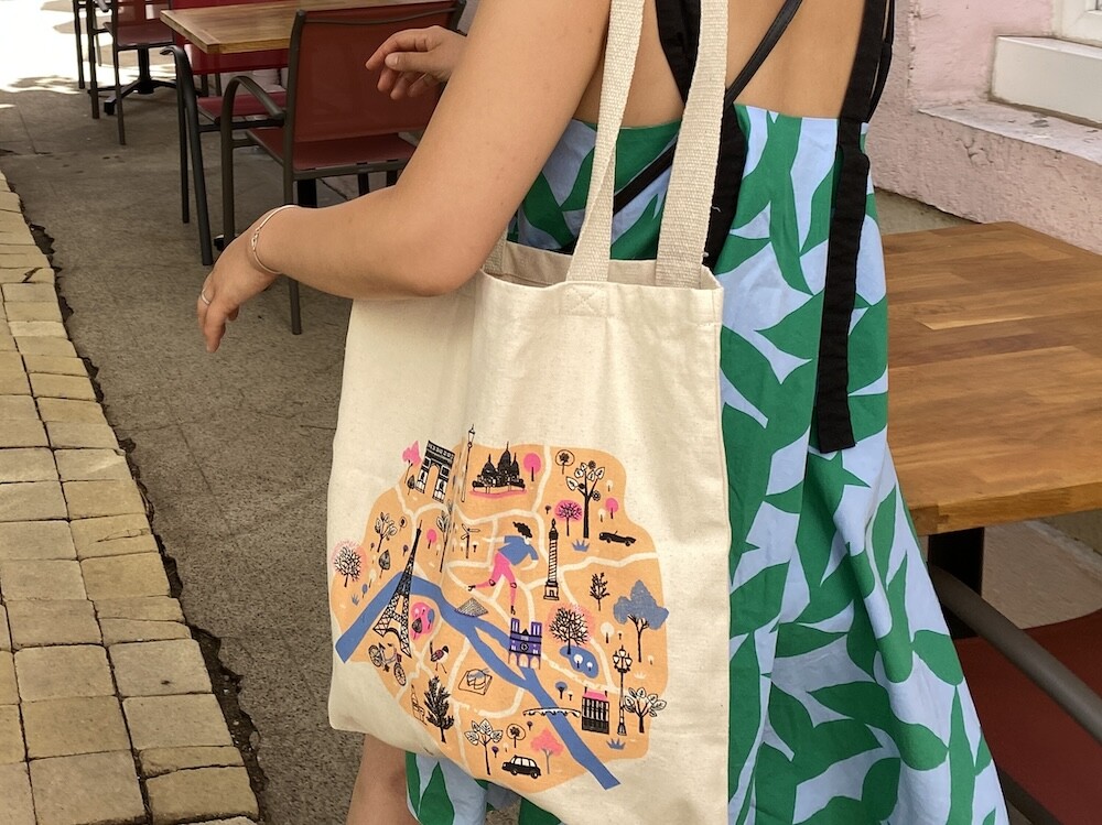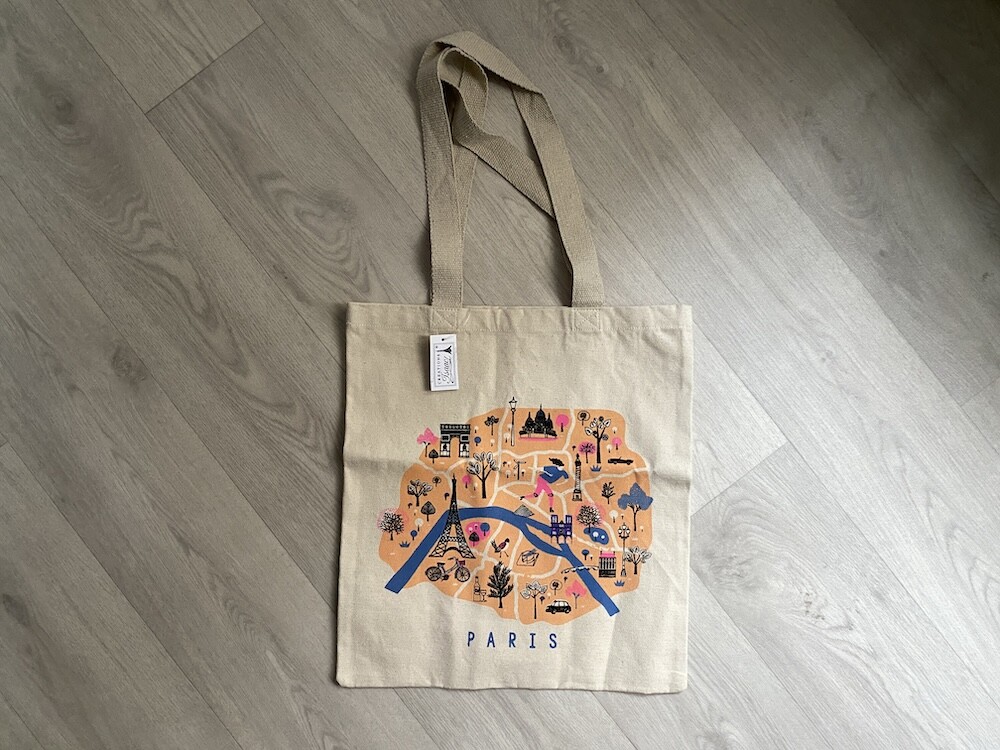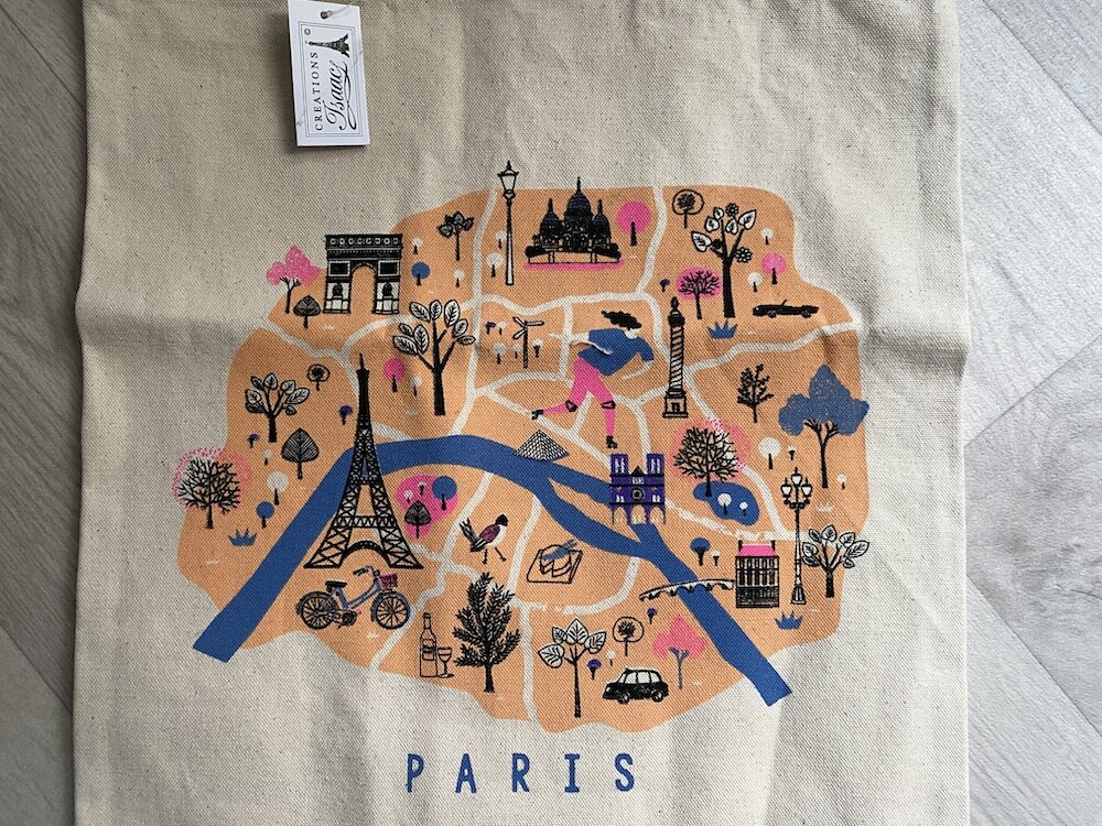 파리의 지도 위에 파리를 상징하는 다양한 건축물들이 그려진 에코백이에요. 이 지도에 그려진 곳들만 가 봐도 파리에서 중요한 곳은 다 가 봤다고 할 수 있을 것 같아요.