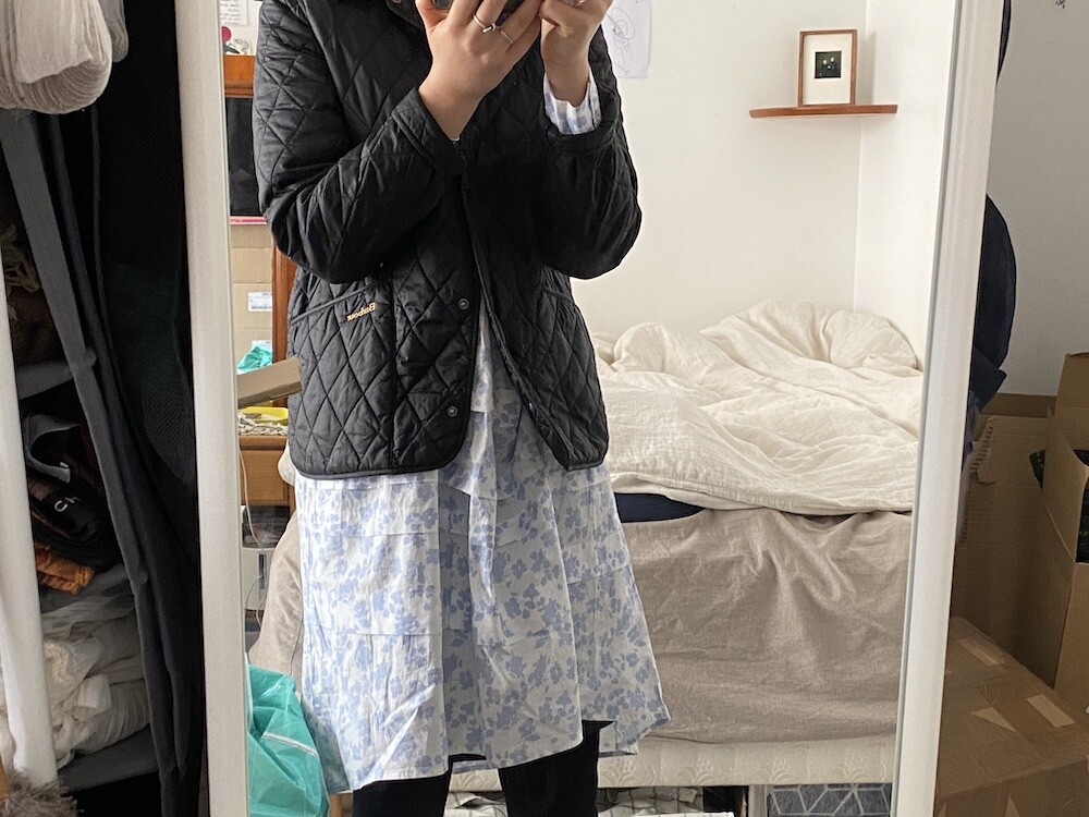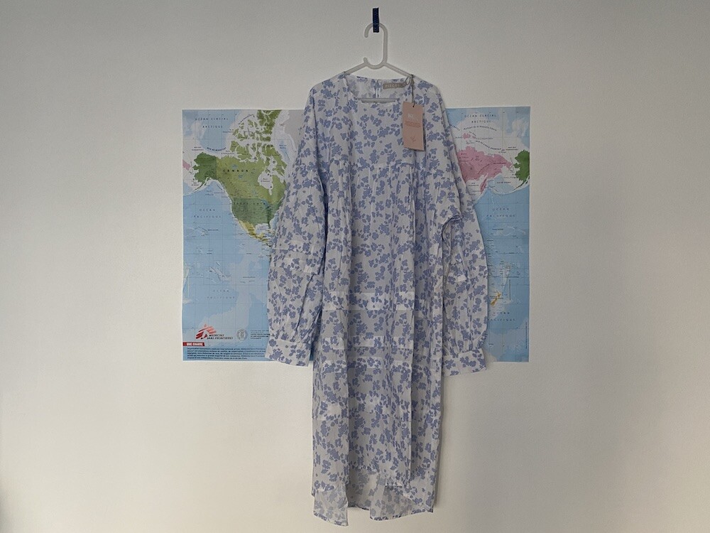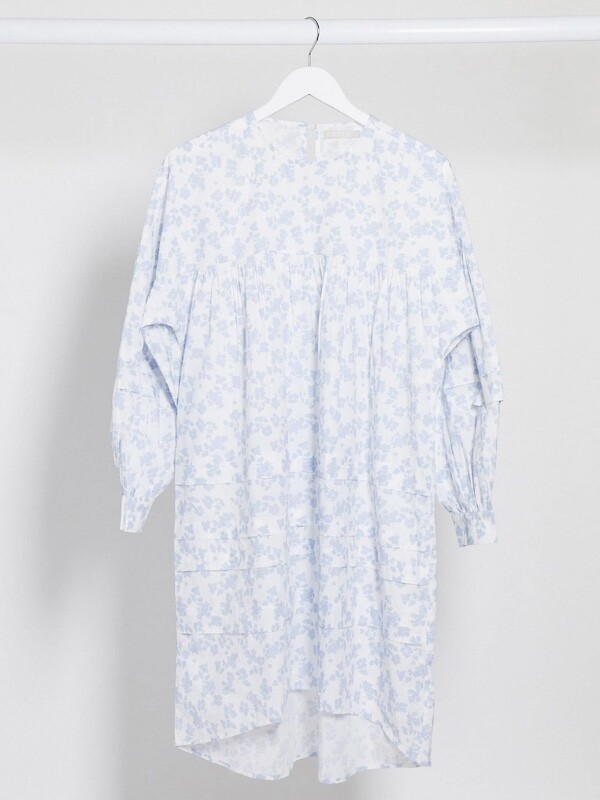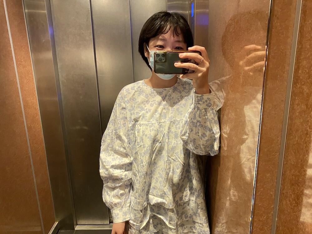 이 원피스는 제가 좋아하는 요소들이 다 들어 있는 원피스예요. 가벼운 소재, 널널한 사이즈, 심심하지 않은 꽃 무늬, 거기에 주름 디테일까지! 이런 펑퍼짐한 원피스 좋아하시는 분들께서 지루하지 않게 입으실 수 있으실 만한 다양한 특징들이 가득한 원피스예요. 단독으로 입어도 너무 예쁘지만 겉옷을 입어도 예쁜 옷이라, 가을에 니트와 함께 입어도 정말 예쁠 것 같아요.