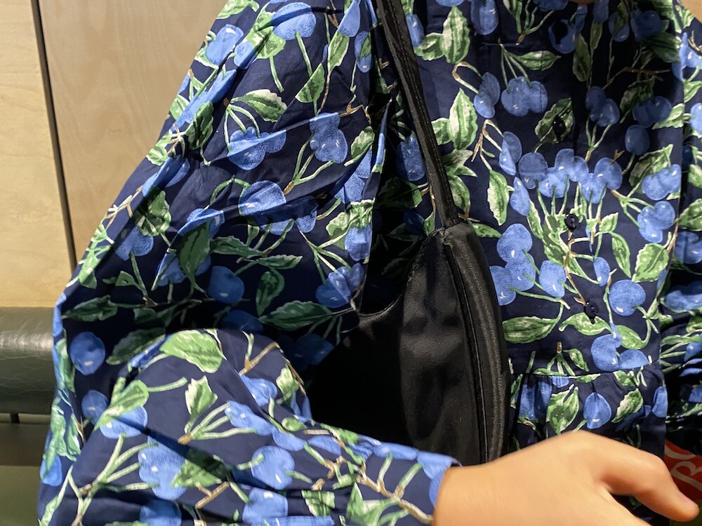이 원피스는 제가 좋아하는 요소들이 다 들어 있는 원피스예요. 가뿐한 소재, 널널한 사이즈, 심심하지 않은 무늬, 거기에 퍼프 소매까지! 자칫 베이비돌 드레스는 펑퍼짐해서 뚱뚱해 보일 수 있는데 이 원피스는 가슴 부분에 다트(입체 패턴)가 있어서 가슴은 살짝 감싸주는 느낌이면서 전반적으로는 베이비돌 원피스의 느낌을 놓치지 않았어요. 이런 펑퍼짐한 원피스 좋아하시는 분들께서 지루하지 않게 입으실 수 있으실 만한 다양한 특징들이 가득한 원피스예요. 단독으로 입어도 너무 예쁘지만 겉옷을 입어도 예쁜 옷이라, 가을에 니트와 함께 입어도 정말 예쁠 것 같아요.