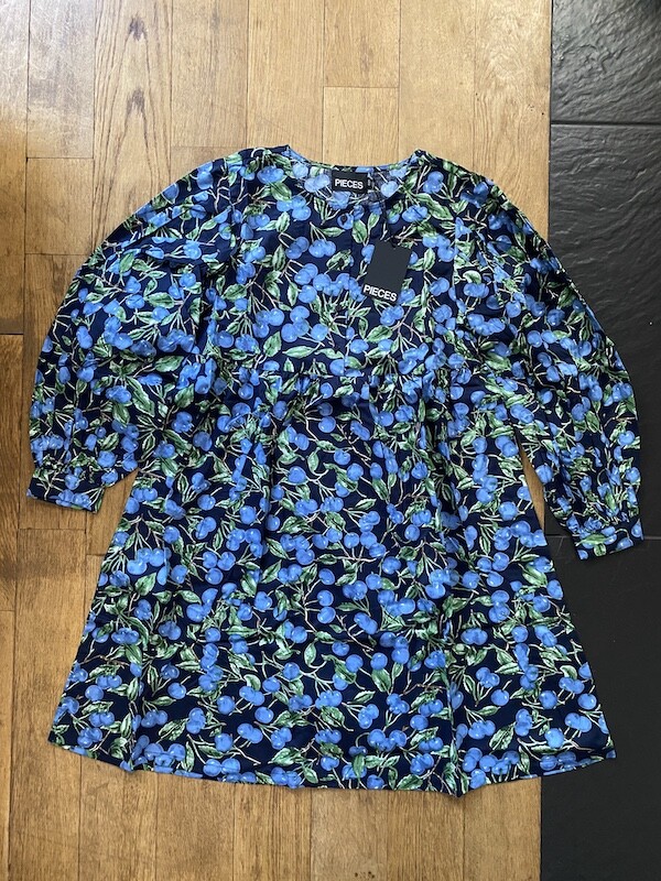 피시스(PIECES) 알로나 ALONA 블루 체리 원피스 여성 S사이즈입니다.