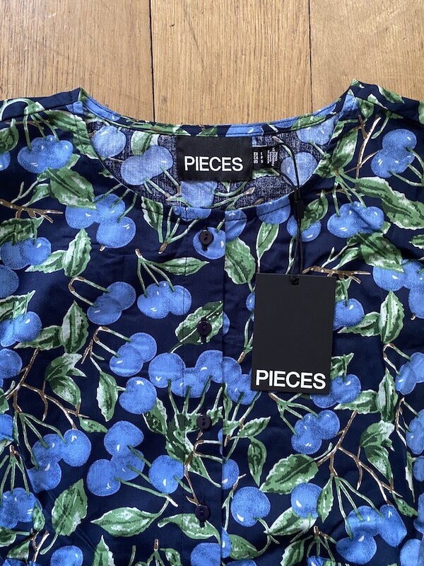 피시스(PIECES)는 덴마크의 여성 의류 및 액세서리 브랜드예요. 특히 패턴이 있는 소재나 색깔이 예쁜 원단이 많은 브랜드예요.