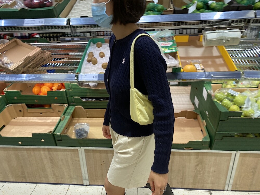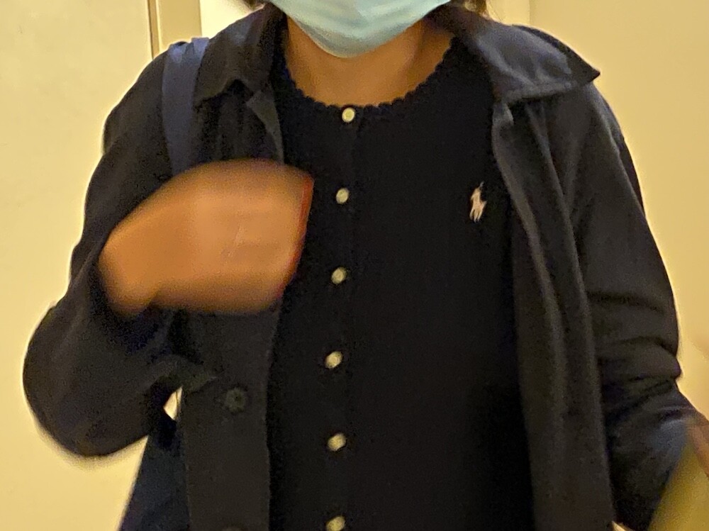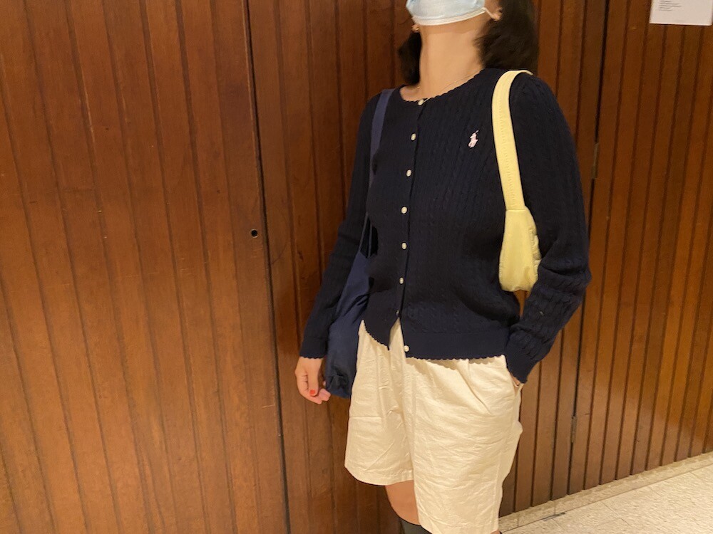편안히 놓고 재었을 때 가슴 둘레는 43cm라 성인한테 좀 작을까? 싶은데요. 쫙쫙 늘어나서 아주 편안하게 잘 맞아요. 보통 빅키즈 가디건 판매하시는 분들 글 보면 여성 55반까지 잘 맞는다고 되어 있는데, 만약 그랬다면 저한테는 안 맞았을 거예요. 그런데 보통 M(66)입는 저한테도 잘 맞아요!