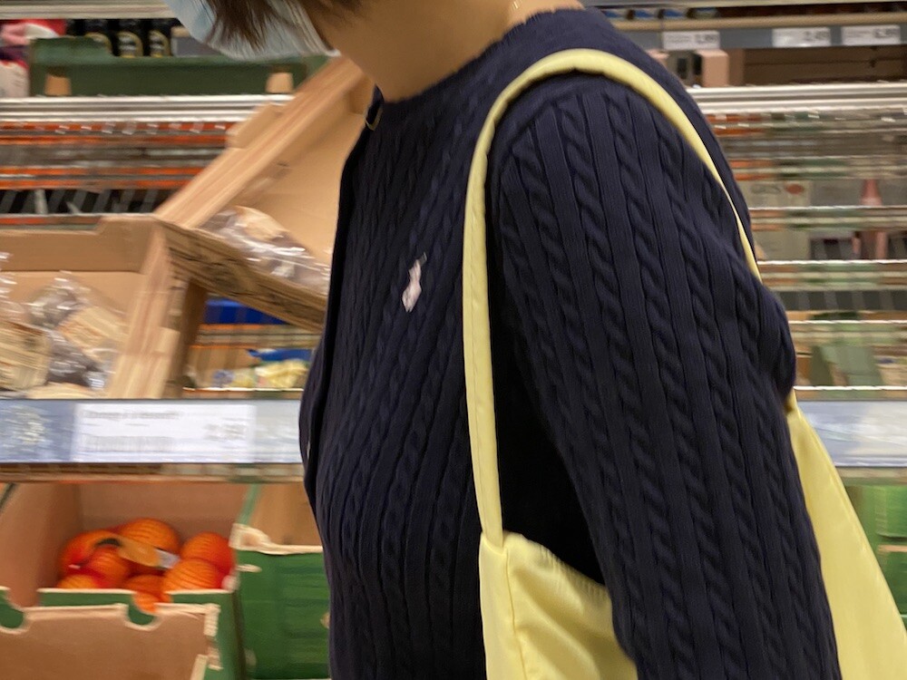 꽈배기 니트 입었을 때 가슴 부분만 확 늘어나면 엄청 뚱뚱해 보이는데 이 니트는 모든 부분이 몸에 잘 맞게 편안하게 늘어나더라고요. 그래서 부해 보이지 않고 몸에는 예쁘게 잘 맞아요. 니트만 입어도, 티셔츠 위에 입어도 뚱뚱해 보이지 않아서 갑자기 쌀쌀해진 날씨에 아주 잘 입고 있어요.