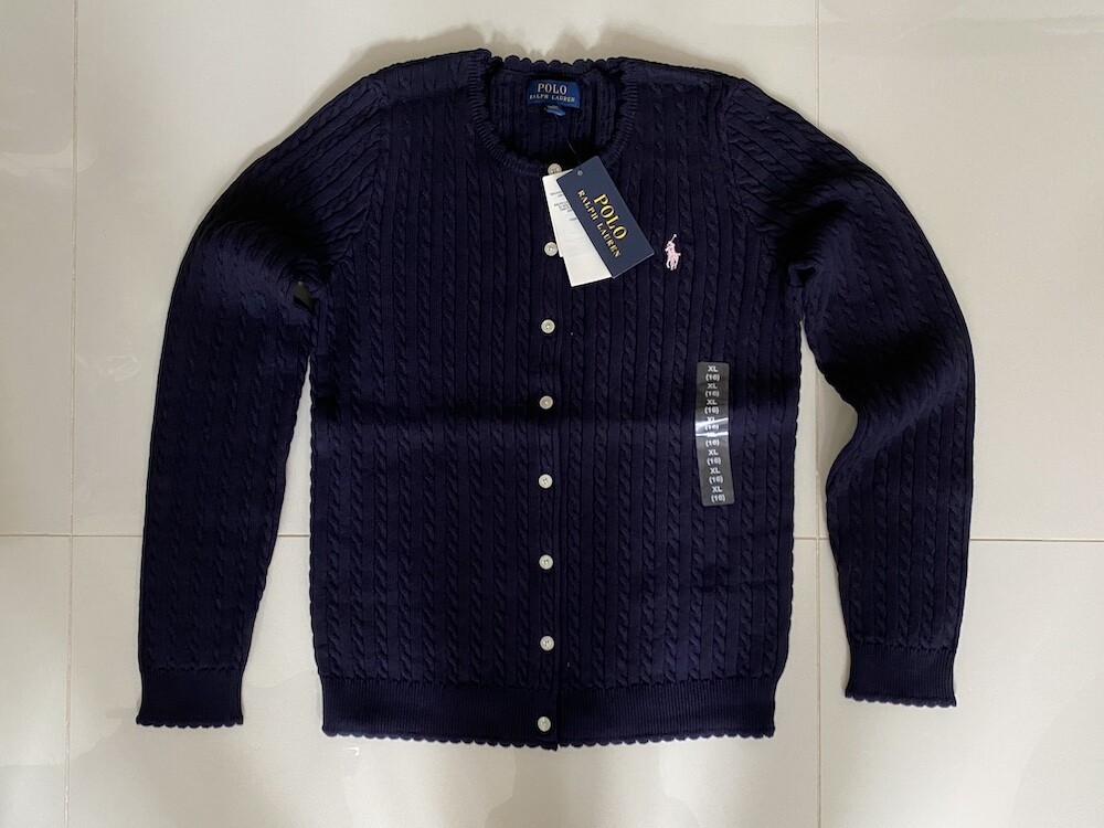 폴로 랄프로렌(POLO RALPH LAUREN) 빅걸즈 꽈배기 니트 가디건 네이비 색상, XL(16) 사이즈입니다.