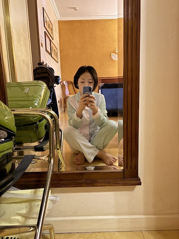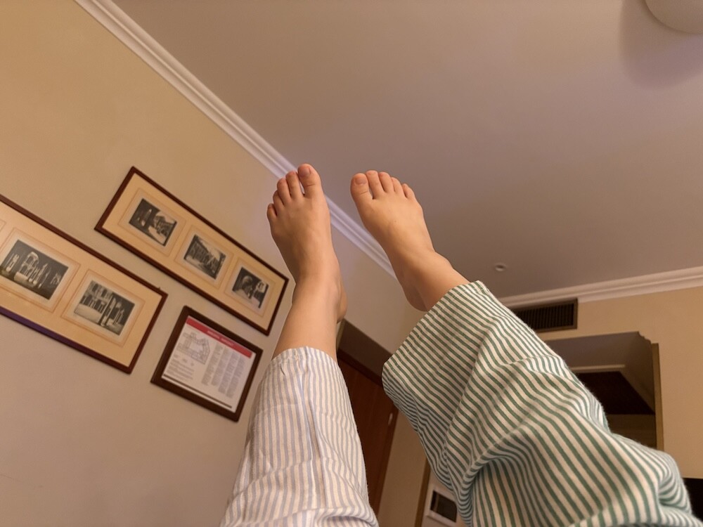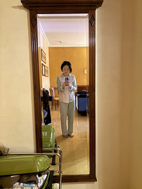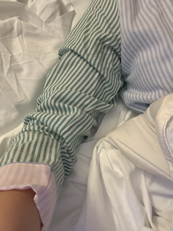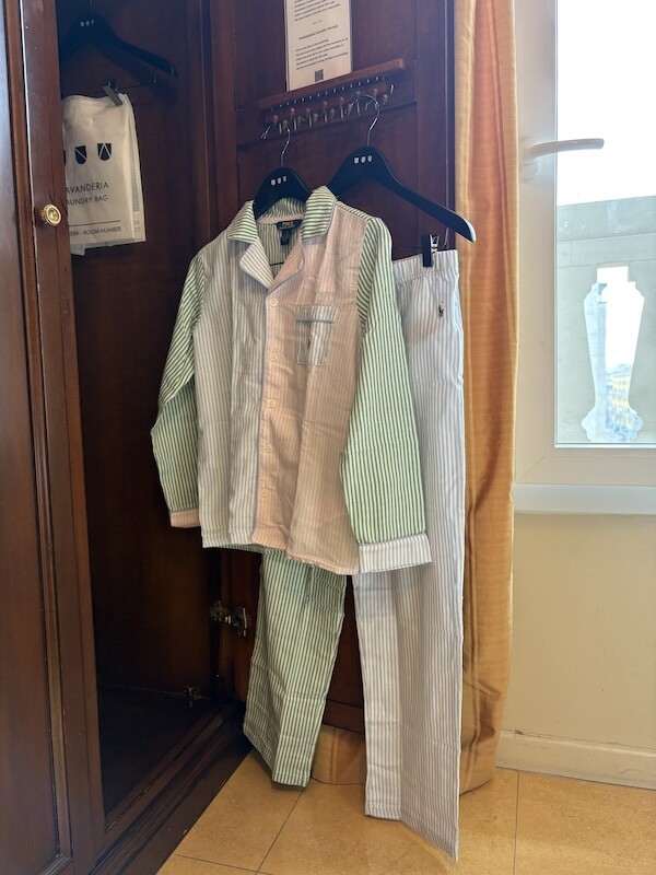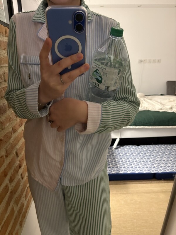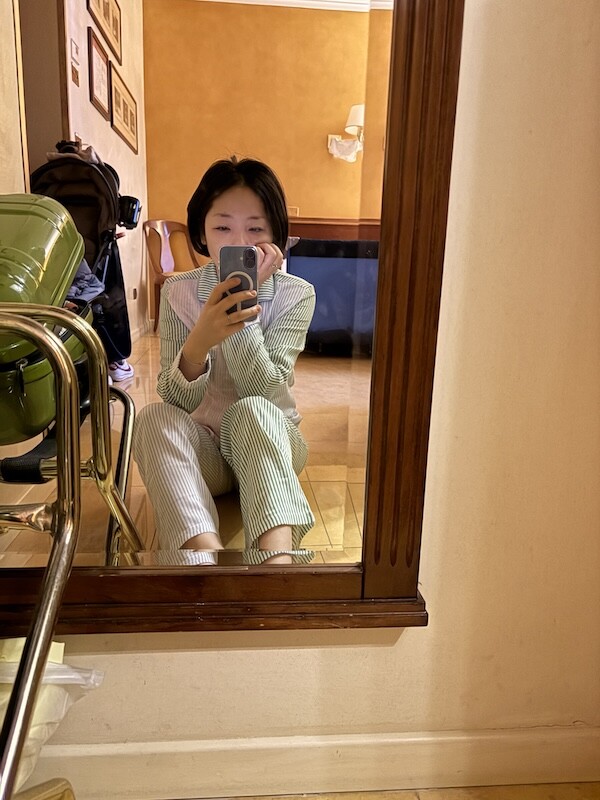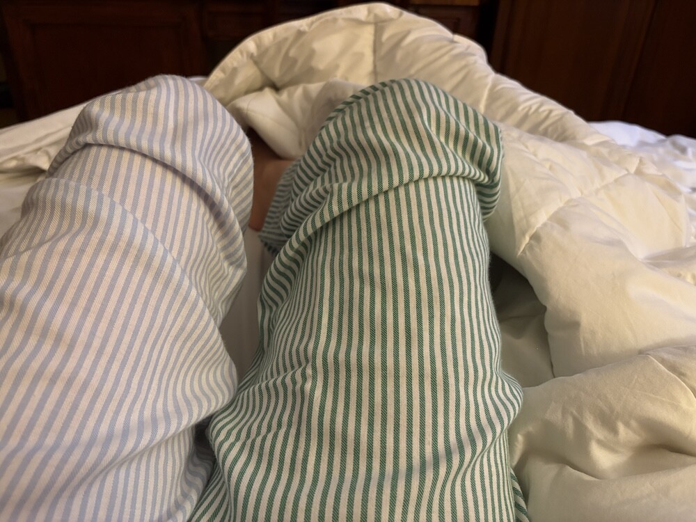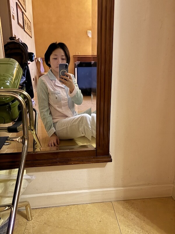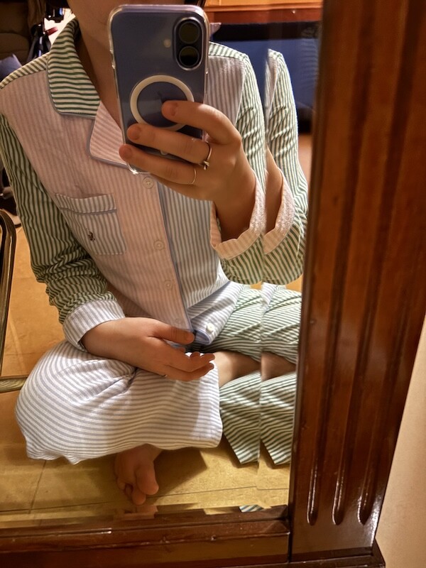 셔츠와 바지로 구성된 잠옷 세트입니다. 폴로에서 나오는 디자인 중에 이런 컬러 블록 셔츠나 티셔츠가 많은데, 잠옷까지 나왔네요! 은은한 컬러의 줄무늬들이 꼭 솜사탕을 보는 것 같아서 입기만 해도 기분이 좋더라고요. 셔츠 디자인인데도 목 부분이 거슬리거나 불편하지 않아서 편안히 잠자리에 들었어요.